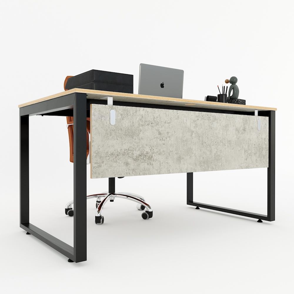 Bàn làm việc 140x80cm hệ Rectang HBRT047 với mặt bàn gỗ Plywood cốt gỗ tự nhiên bề mặt phủ melamin được xử lý chống thấm nước và cong vênh, mặt bàn màu bê tông độc đáo chắc chắn là điểm nhấn thú vị cho không gian làm việc. Kết hợp với mặt bàn Plywood là hệ khung chân sắt theo cơ cấu lắp ráp ngàm thông minh, tiện lợi nhưng vẫn đảm bảo độ chắc chắn, bên cạnh đó bề mặt chân sắt được phủ lớp sơn tĩnh điện cao cấp làm hạn chế ăn mòn hoá học giúp sản phẩm có độ bền cao hơn. Bàn với kích thước 140x80cm khá rộng rãi dành cho các vị lãnh đạo hay làm việc tại nhà, bàn có tấm che chân treo với phụ kiện treo cao cấp rất đẹp mắt.