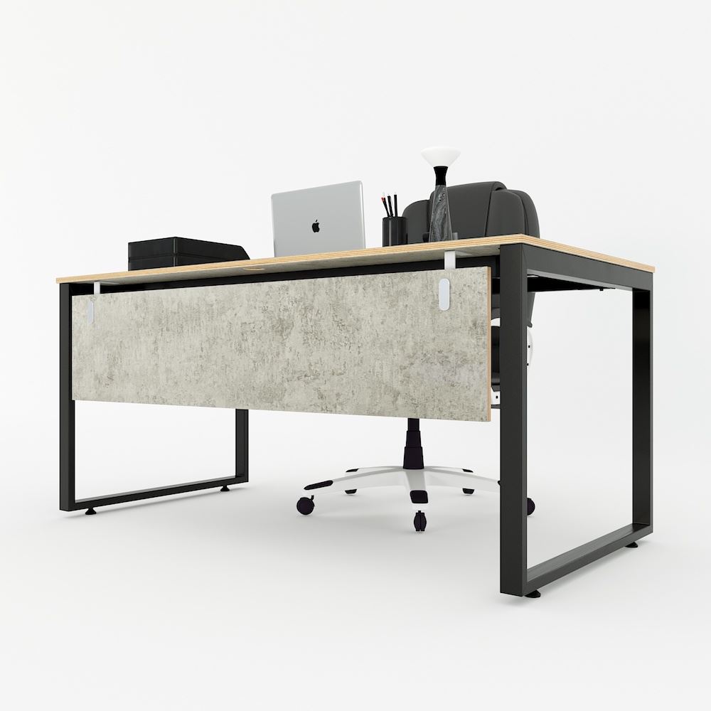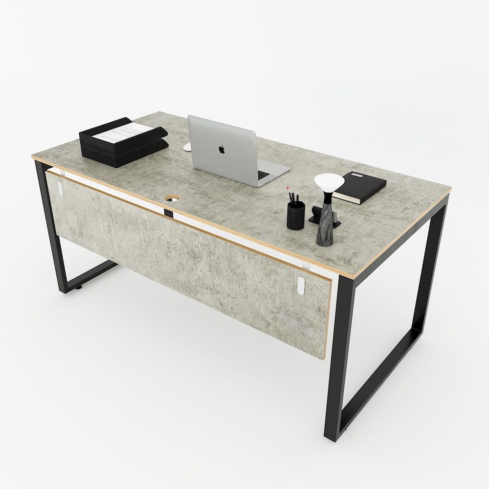 Bàn làm việc 160x80cm hệ Rectang HBRT048 với mặt bàn gỗ Plywood cốt gỗ tự nhiên bề mặt phủ melamin được xử lý chống thấm nước và cong vênh, mặt bàn màu bê tông độc đáo chắc chắn là điểm nhấn thú vị cho không gian làm việc. Kết hợp với mặt bàn Plywood là hệ khung chân sắt theo cơ cấu lắp ráp ngàm thông minh, tiện lợi nhưng vẫn đảm bảo độ chắc chắn, bên cạnh đó bề mặt chân sắt được phủ lớp sơn tĩnh điện cao cấp làm hạn chế ăn mòn hoá học giúp sản phẩm có độ bền cao hơn