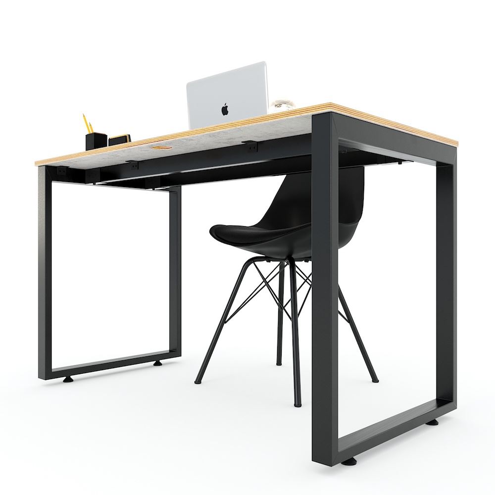 Bàn làm việc 120x60cm hệ Rectang HBRT043 với mặt bàn gỗ Plywood cốt gỗ tự nhiên bề mặt phủ melamin được xử lý chống thấm nước và cong vênh, mặt bàn màu bê tông độc đáo chắc chắn là điểm nhấn thú vị cho không gian làm viêc của bạn. Kết hợp với mặt bàn Plywood là hệ khung chân sắt theo cơ cấu lắp ráp ngàm thông minh, tiện lợi nhưng vẫn đảm bảo độ chắc chắn, bên cạnh đó bề mặt chân sắt được phủ lớp sơn tĩnh điện cao cấp làm hạn chế ăn mòn hoá học giúp sản phẩm có độ bền cao hơn. Mặt bàn có kích thước 120x60cm theo tiêu chuẩn bàn làm việc hiện nay.