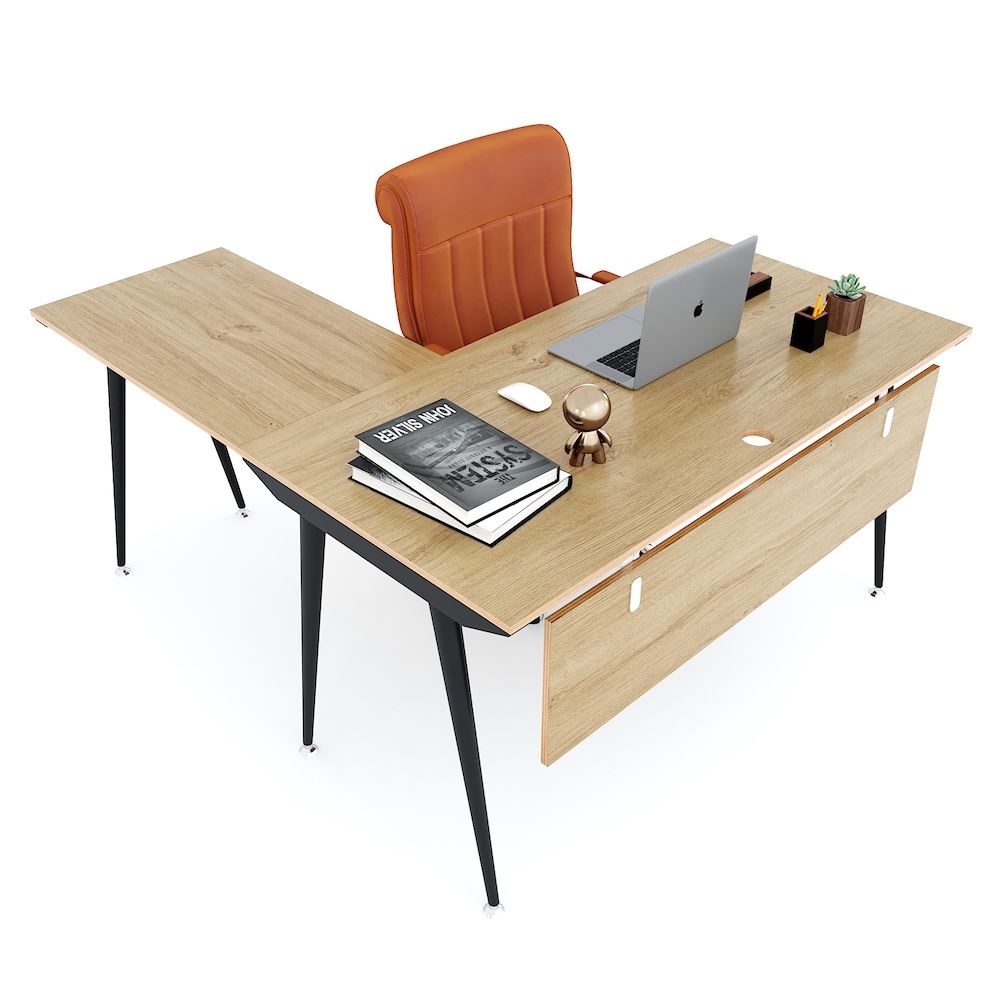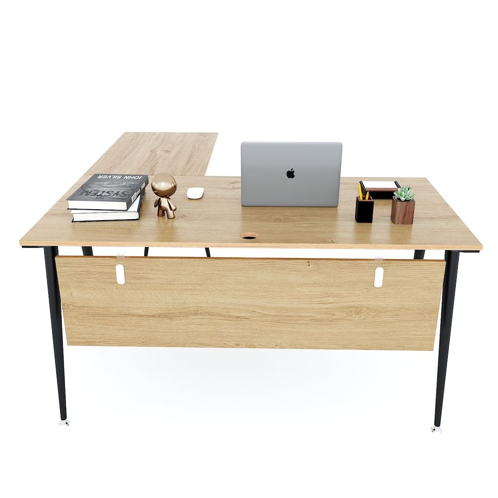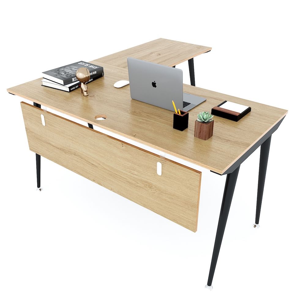 Bàn chữ L 140x150cm gỗ Plywood phủ melamin chân sắt Cone HBCO038 với mặt bàn gỗ Plywood cốt gỗ tự nhiên bề mặt phủ melamin vân sồi đẹp mắt, bề mặt bàn được xử lý chống thấm nước và cong vênh, màu gỗ tự nhiên đẹp mắt mang đến sự thân thiện, gần gũi cho không gian làm việc của bạn. Kết hợp mặt bàn gỗ Plywood là hệ khung chân hệ Cone (sắt vuốt côn 49mm - 21mm) cơ cấu lắp ráp ngàm vô cùng chắc chắn và dễ dàng tháo lắp di dời, chân sắt sơn tĩnh điện chất lượng cao bền bỉ theo thời gian. Với những người làm việc với 2 màn hình, hay thường xuyên sử dụng máy in thì bàn làm việc góc L chính là sự lựa chọn tuyệt vời không thể bỏ qua.