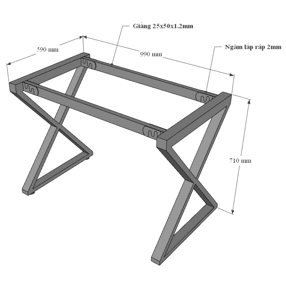 Hệ khung chân sắt cơ cấu lắp ráp ngàm chắc chắn, tiện lợi