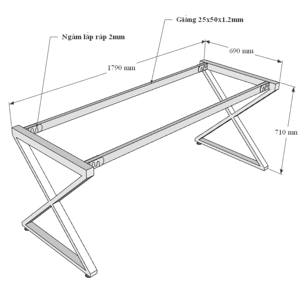 Hệ khung chân sắt cơ cấu lắp ráp ngàm chắc chắn, tiện lợi