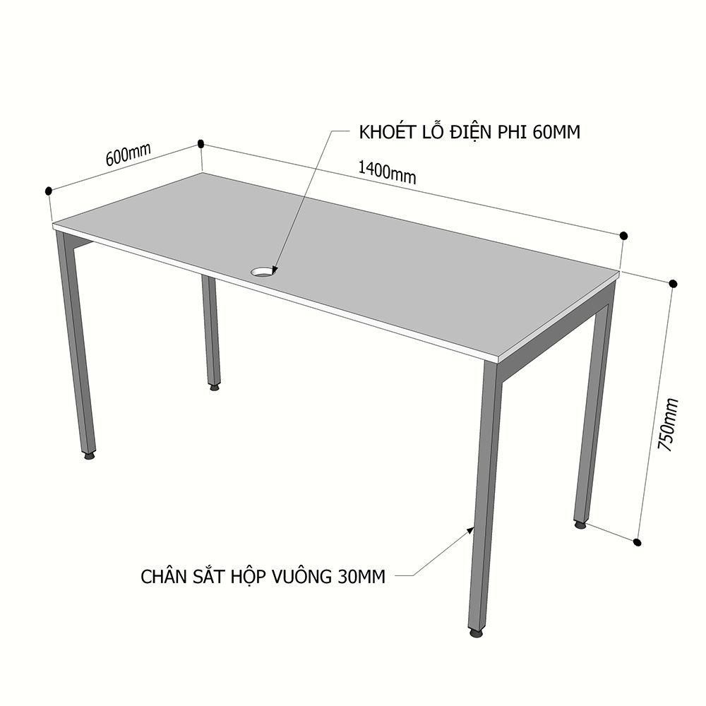 Chân sắt lắp ráp cho bàn 140x60cm hệ SLEAN có quỳ
