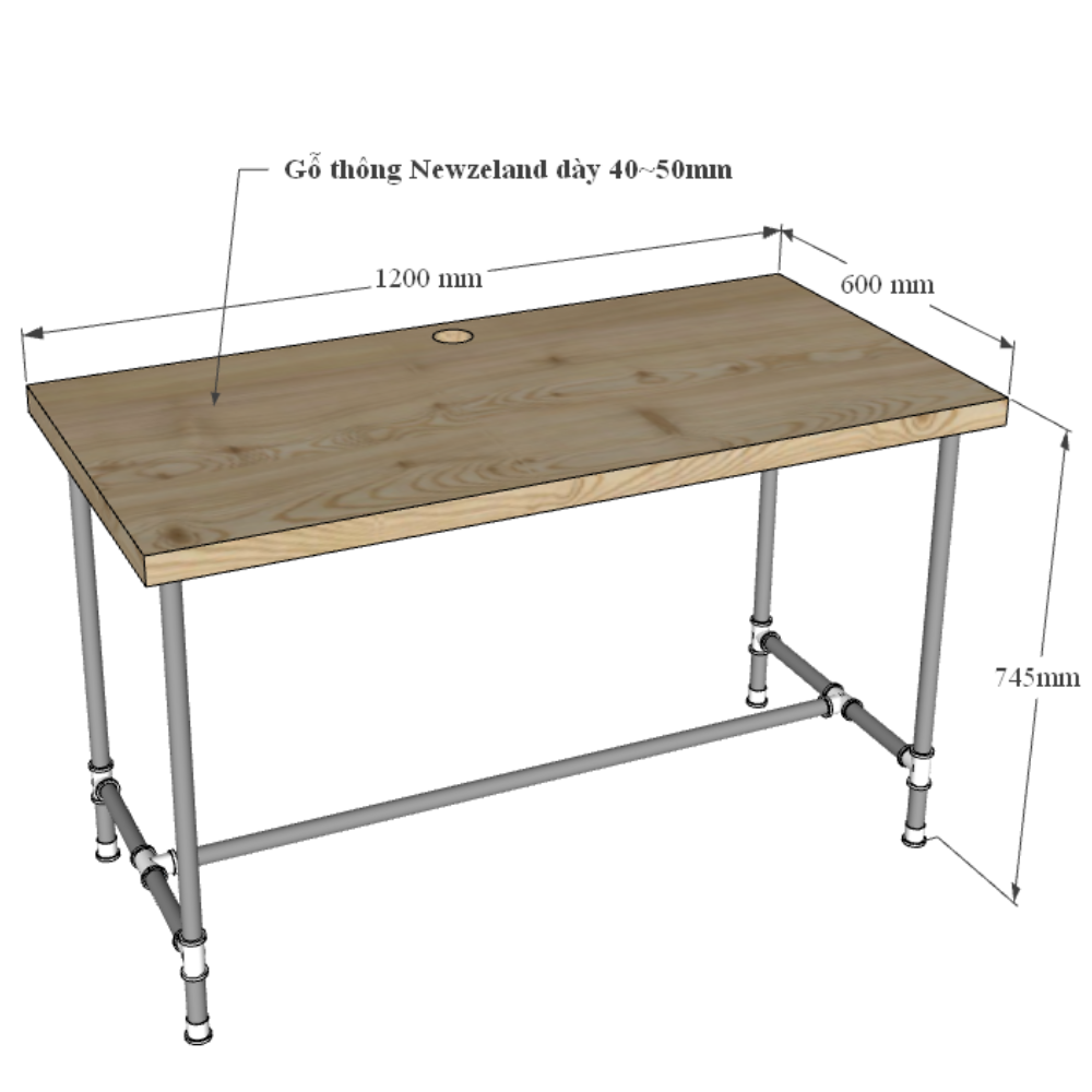 Bàn làm việc gỗ thông dày 45mm giá rẻ