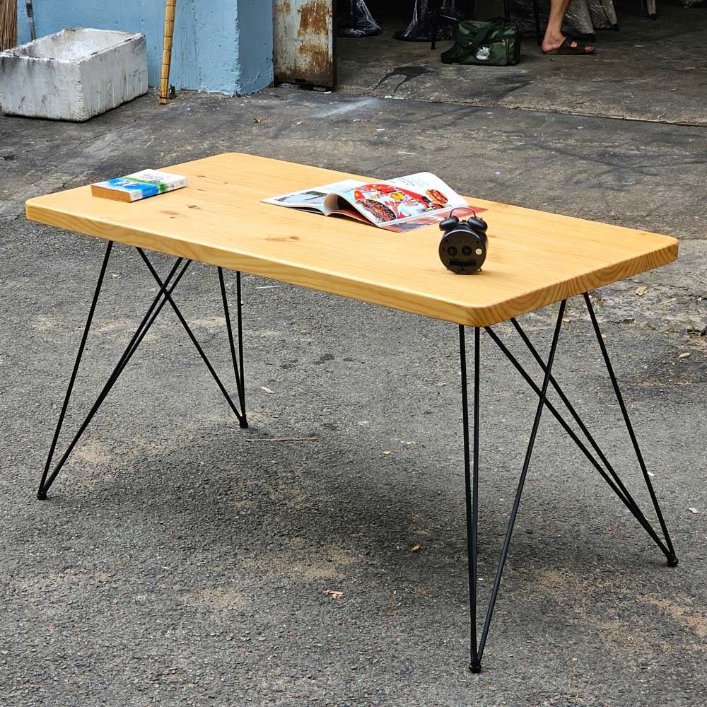 Bàn làm việc 140x70cm gỗ thông dày 4cm chân sắt Hairpin Pro