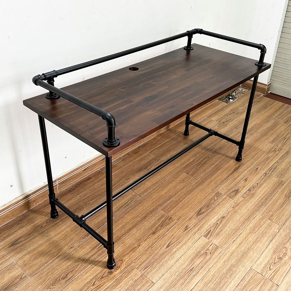 Bàn làm việc 140x60cm gỗ Tràm chân ống nước HBON012 sở hữu kiểu dáng vô cùng đẹp mắt với thiết kế chân ống nước tiện ren lắp ráp từ các phụ kiện ống nước trong phòng cháy chữa cháy cùng mặt bàn gỗ tràm 25mm tiêu chuẩn AA được xử lý PU hoàn thiện cho bề mặt sản phẩm rất đẹp mắt, chống nước tuyệt đối rất dễ dàng vệ sinh và có thể chịu tải trọng lên đến 100kg nên quý khách có thể an tâm sử dụng với nhiều máy móc, thiết bị trên bàn.