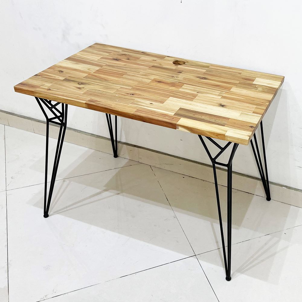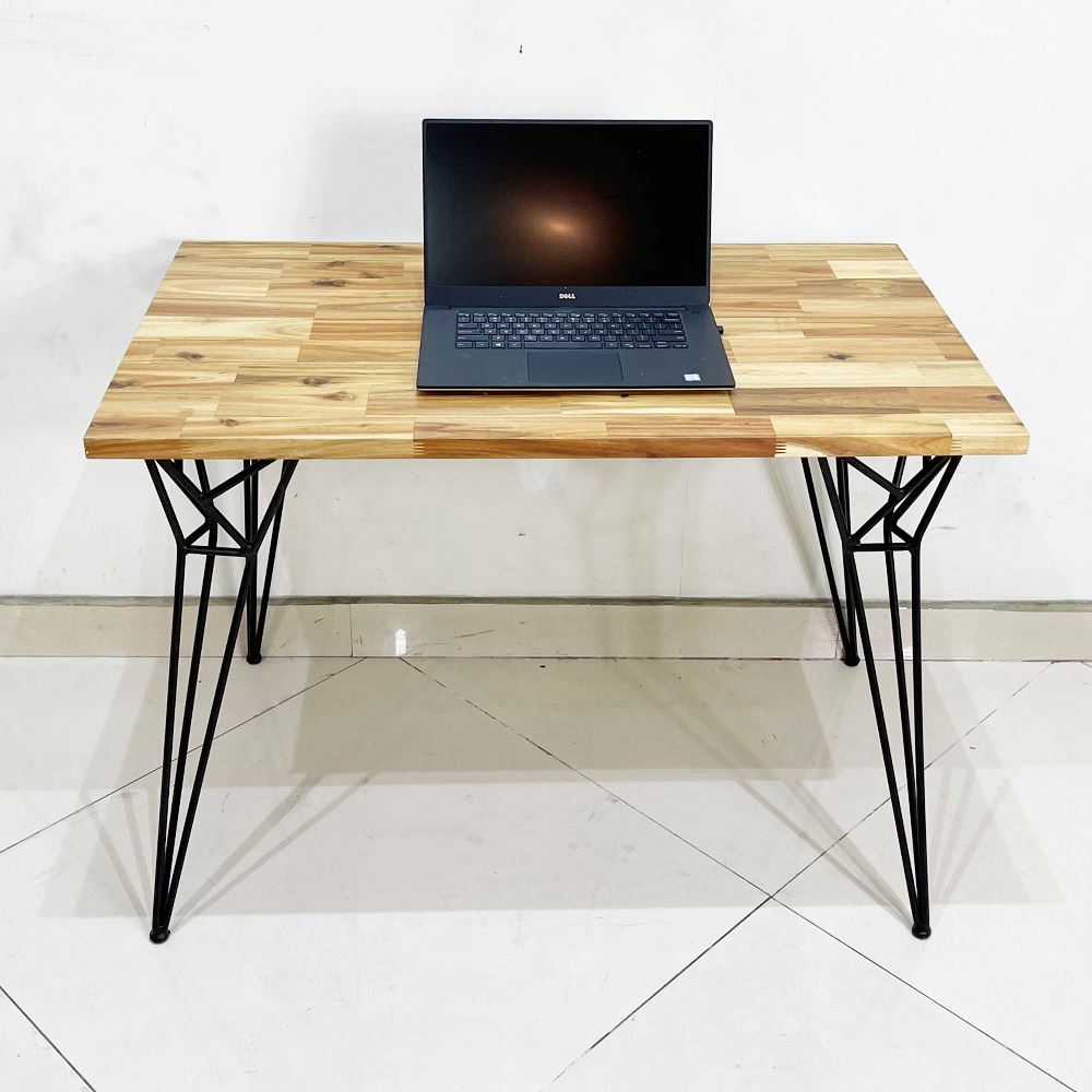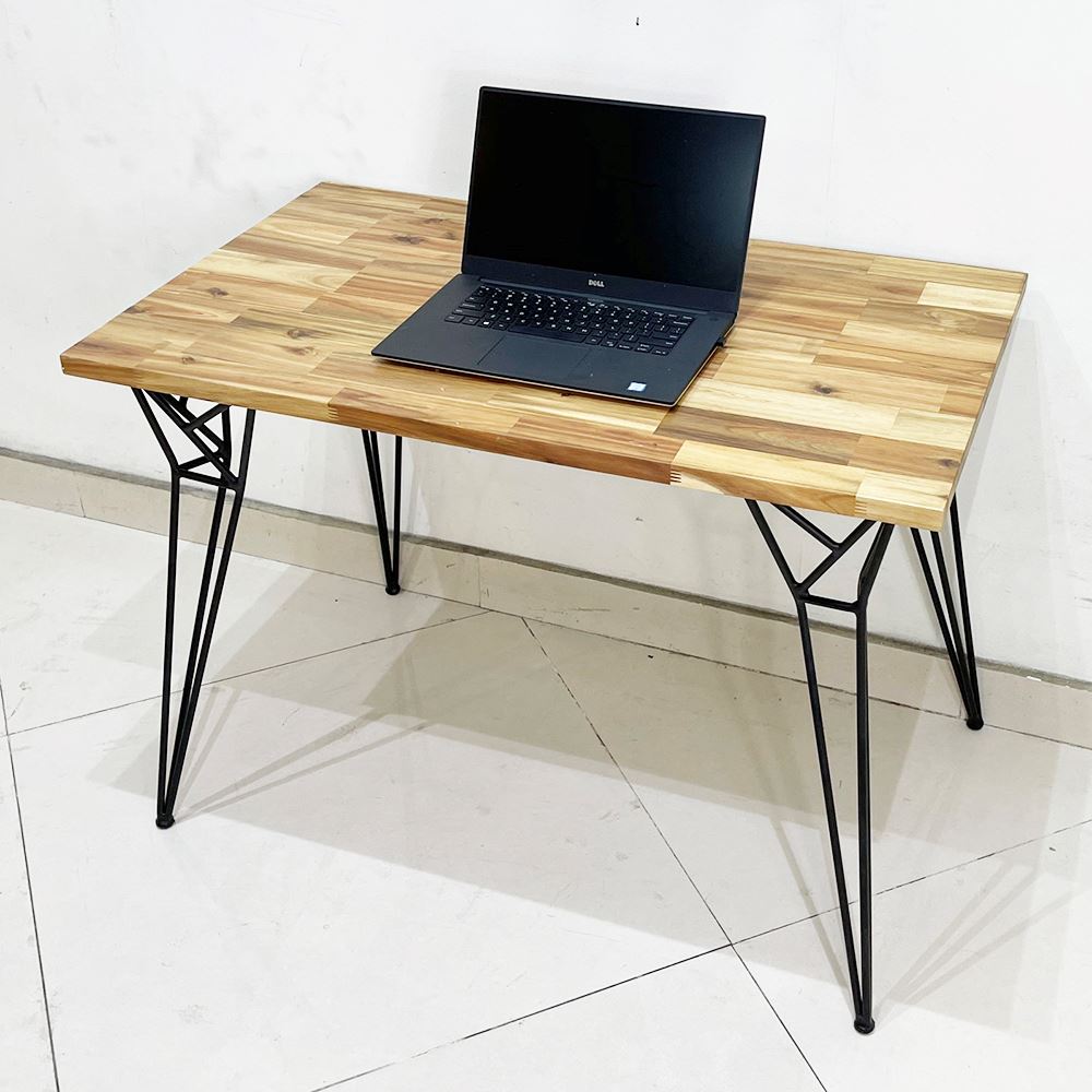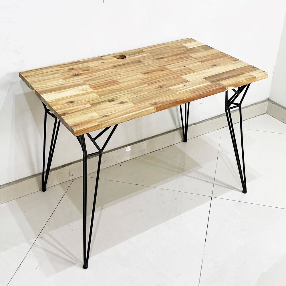 Bàn làm việc mặt gỗ tràm dày 25mm chân sắt Hairpin Plus