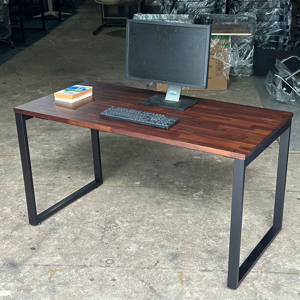 Bàn làm việc gỗ tràm 140x70cm hệ Wooden chân sắt lắp ráp HBWD005 chân sắt chữ nhật 25x50. Bàn văn phòng gỗ tràm tiêu chuẩn AA dày 25mm PU màu gỗ tự nhiên luôn có một vẻ đẹp riêng, thân thiện với môi trường, đối với các văn phòng mở, văn phòng kết hợp với cây xanh thì việc sử dụng bàn gỗ tràm chân sắt kết hợp trở nên hoàn hảo. Chất liệu gỗ tràm tại HomeOffice là loại dày 25mm tiêu chuẩn AA được xử lý PU hoàn thiện cho bề mặt sản phẩm rất đẹp mắt, chống nước tuyệt đối. Khung chân sắt sơn tĩnh điện với cơ cấu ngàm lắp ráp dễ dàng