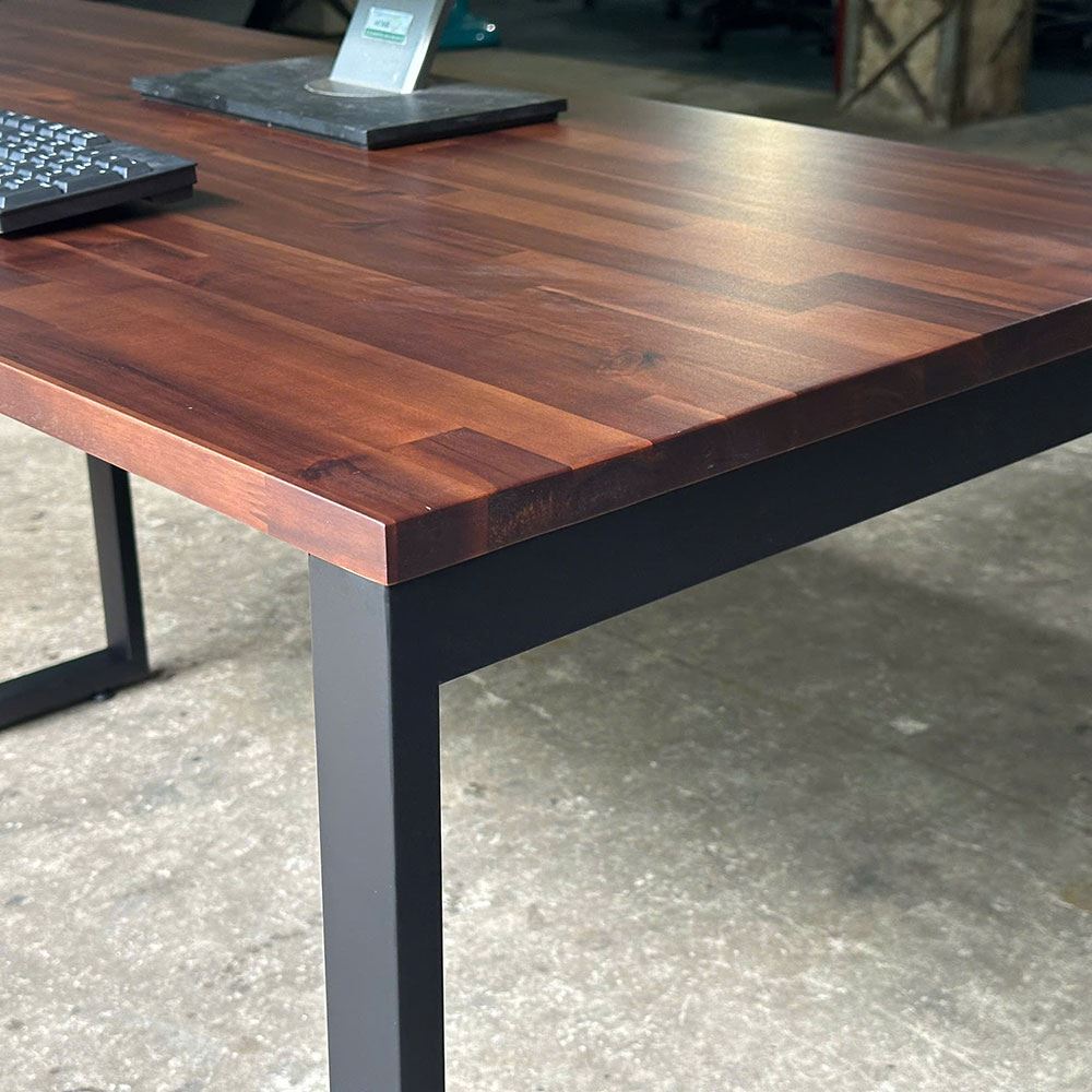 Bàn làm việc gỗ tràm dày 25mm vân gỗ đẹp mắt, là điểm nhấn cho không gian làm việc