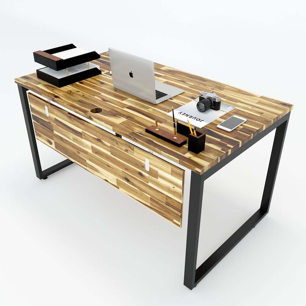 Bàn làm việc gỗ tràm 140x80 chân sắt lắp ráp hệ Wooden HBWD006 chân sắt chữ nhật 25x50. Bàn văn phòng gỗ tràm tiêu chuẩn AA dày 25mm PU màu gỗ tự nhiên luôn có một vẻ đẹp riêng, thân thiện với môi trường, đối với các văn phòng mở, văn phòng kết hợp với cây xanh thì việc sử dụng bàn gỗ tràm chân sắt kết hợp trở nên hoàn hảo. Chất liệu gỗ tràm tại HomeOffice là loại dày 25mm tiêu chuẩn AA được xử lý PU hoàn thiện cho bề mặt sản phẩm rất đẹp mắt, chống nước tuyệt đối. Khung chân sắt sơn tĩnh điện với cơ cấu ngàm lắp ráp dễ dàng