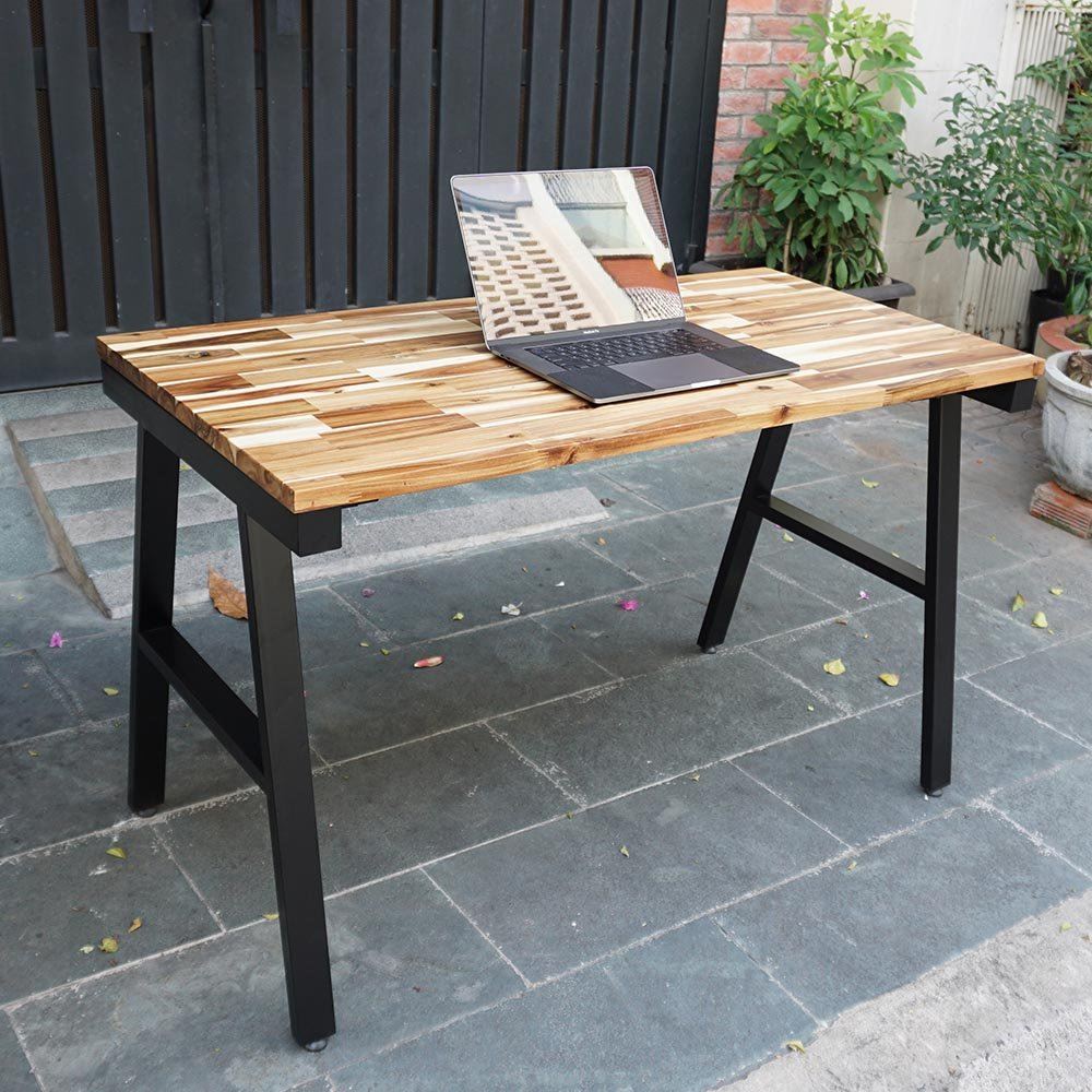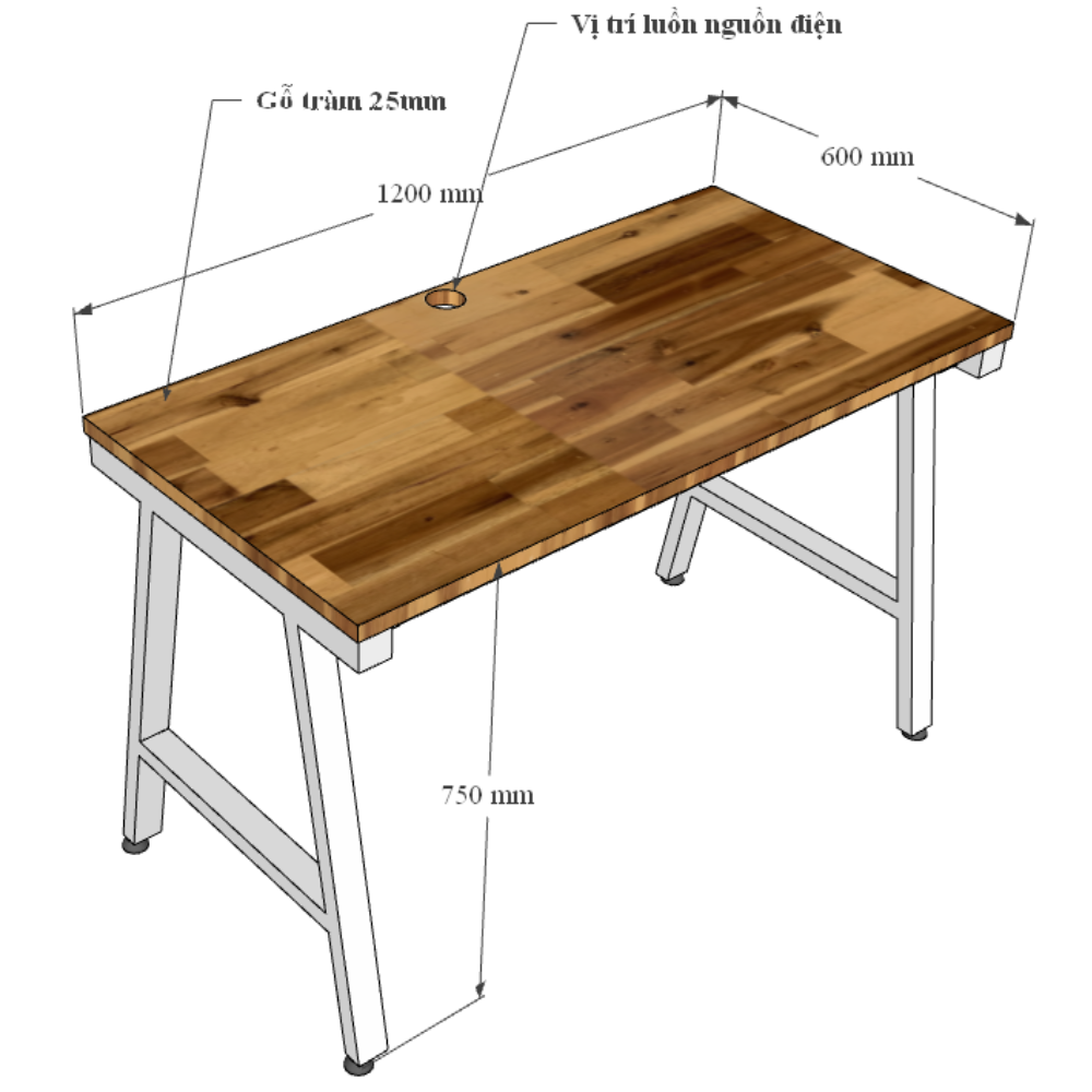 - Bước 2 : Căn vị trí mặt bàn đều các mép và sử dụng vít bắt gỗ liên kết mặt bàn với khung chân