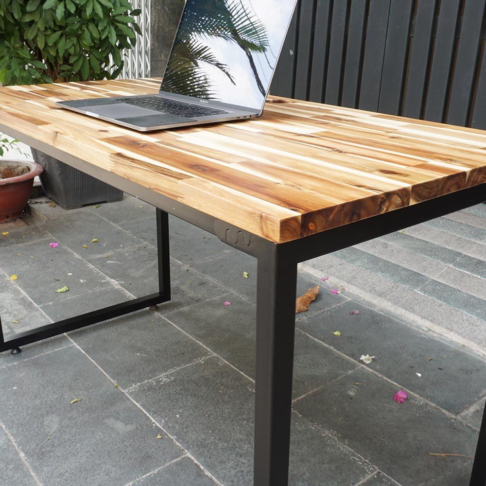 Mặt bàn gỗ tràm dày 25mm được xử lý màu đẹp mắt là điểm nhấn cho không gian làm việc của bạn