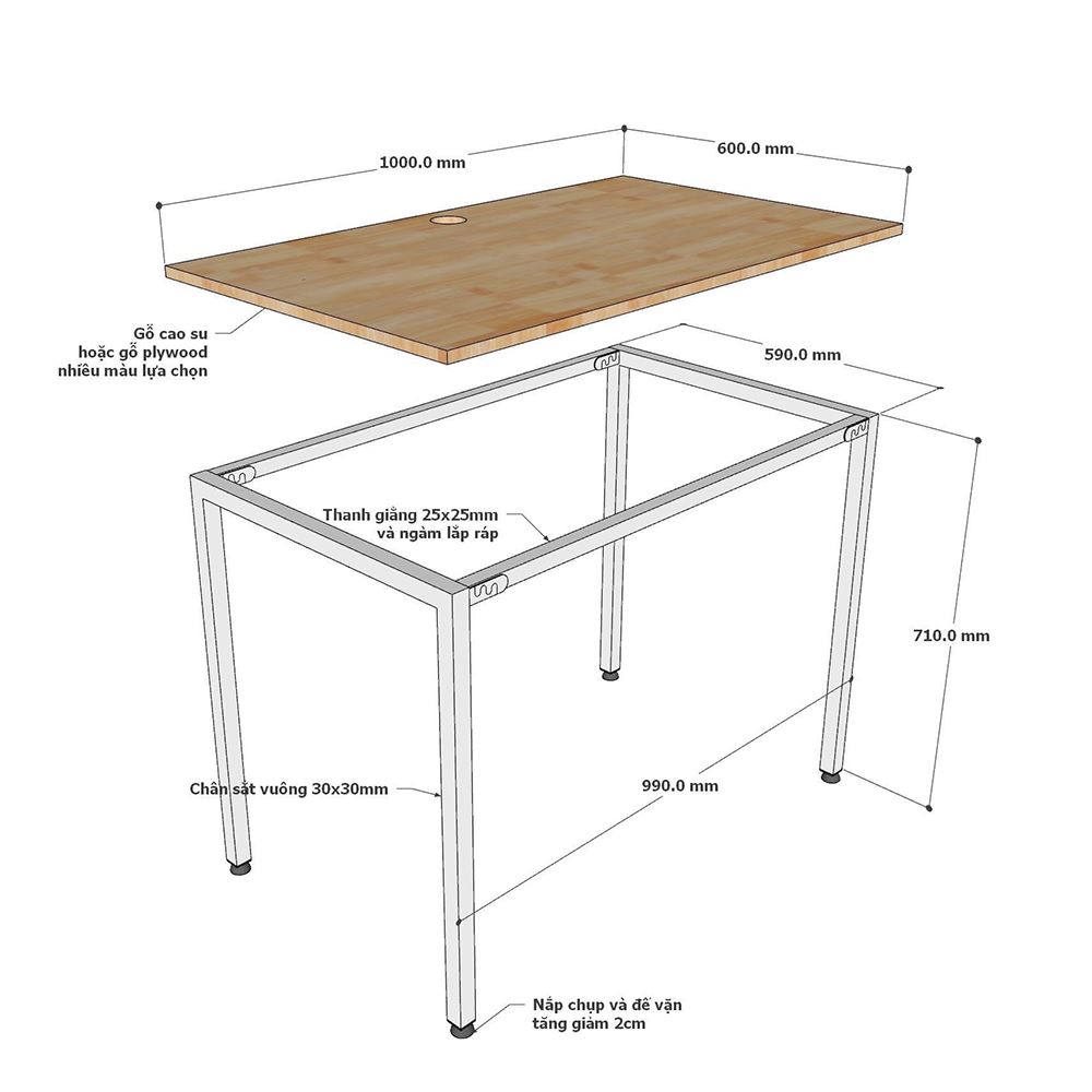 Bàn làm việc 100x60cm gỗ tự nhiên hệ Minimal 2 HBMN029 với chân bàn được làm từ sắt vuông 30x30mm mang đến vẻ đẹp tinh tế nhưng không kém phần chắc chắn, chân bàn liên kết với nhau theo cơ cấu lắp ráp ngàm 25x25mm giúp bạn dễ dàng tháo lắp, thuận tiện di dời vận chuyển. Mặt bàn gỗ cao su tiêu chuẩn AA dày 17mm được xử lý và hoàn thiện chống thấm nước, màu sắc đẹp mắt.