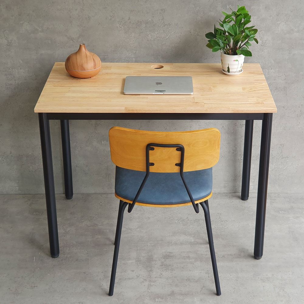 Bàn làm việc 100x60cm gỗ tự nhiên HBOM001 thuộc hệ bàn OMA có đặc điểm khung chân sắt lắp ráp với chân trụ được làm từ sắt tròn toát lên vẻ đẹp mềm mại, tinh tế nhưng không kém phần chắc chắn và tiện lơi khi có thể tháo lắp, giúp việc di dời dễ dàng hơn. Kết hợp với khung chân sắt là mặt bàn gỗ cao su tiêu chuẩn AA sơn PU màu sắc đẹp mắt, bề mặt được sử lý chống thấm nước, chống cong vênh đảm bảo độ bền cao.