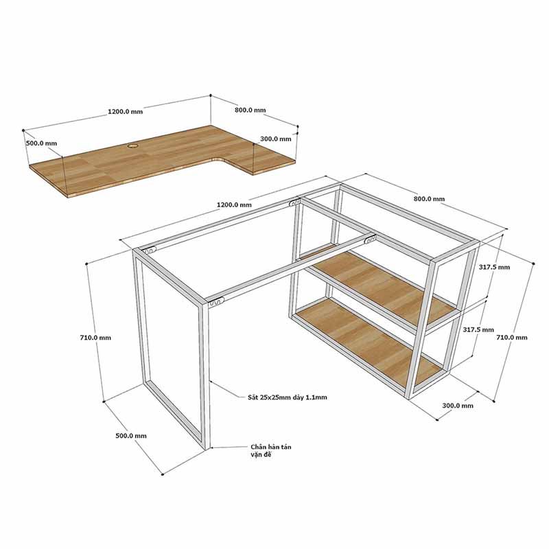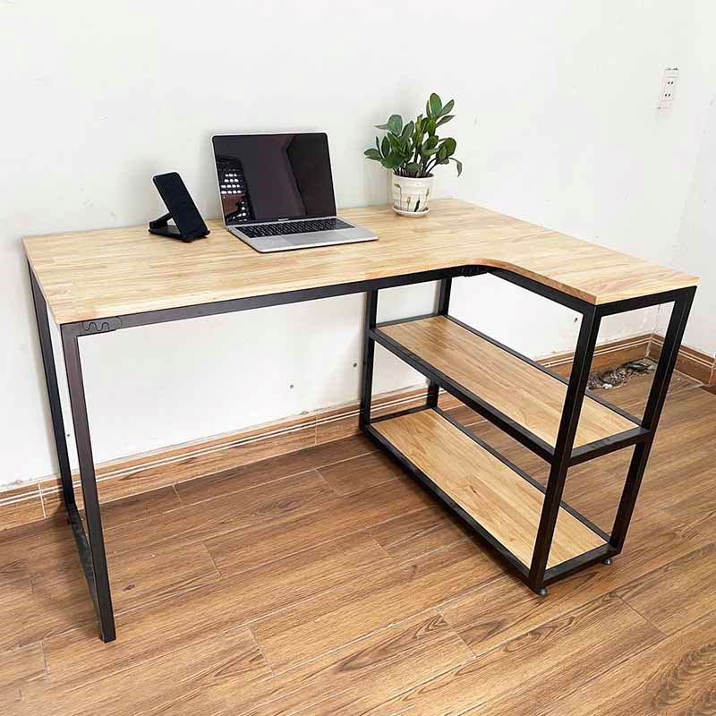 Bàn làm việc góc L chân kết hợp kệ CD68019 với chân bàn được làm từ sắt vuông 25mm mang đến vẻ đẹp tinh tế nhưng không kém phần chắc chắn, chân bàn liên kết với nhau theo cơ cấu lắp ráp ngàm 25x25mm giúp bạn dễ dàng tháo lắp, thuận tiện di dời vận chuyển. Mặt bàn gỗ cao su ghép tiêu chuẩn AA dày 17mm được xử lý và sơn PU hoàn thiện cho bề mặt sản phẩm rất đẹp mắt, chống nước tuyệt đối, mặt bàn sơn PU 5 màu sắc khác nhau giúp bạn có được sự lựa chọn theo concept yêu thích của mình. Đặc biệt chân bàn kết hợp kệ 2 tầng tăng khả năng lưu trữ rất tiện lợi cũng như tiết kiệm diện tích mang đến không thoáng đãng, thoải mái.
