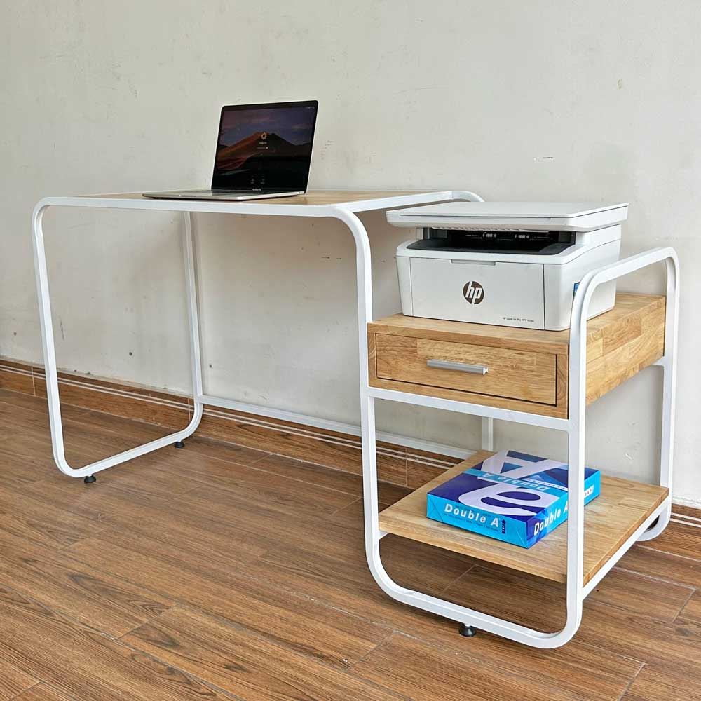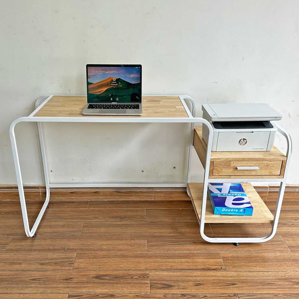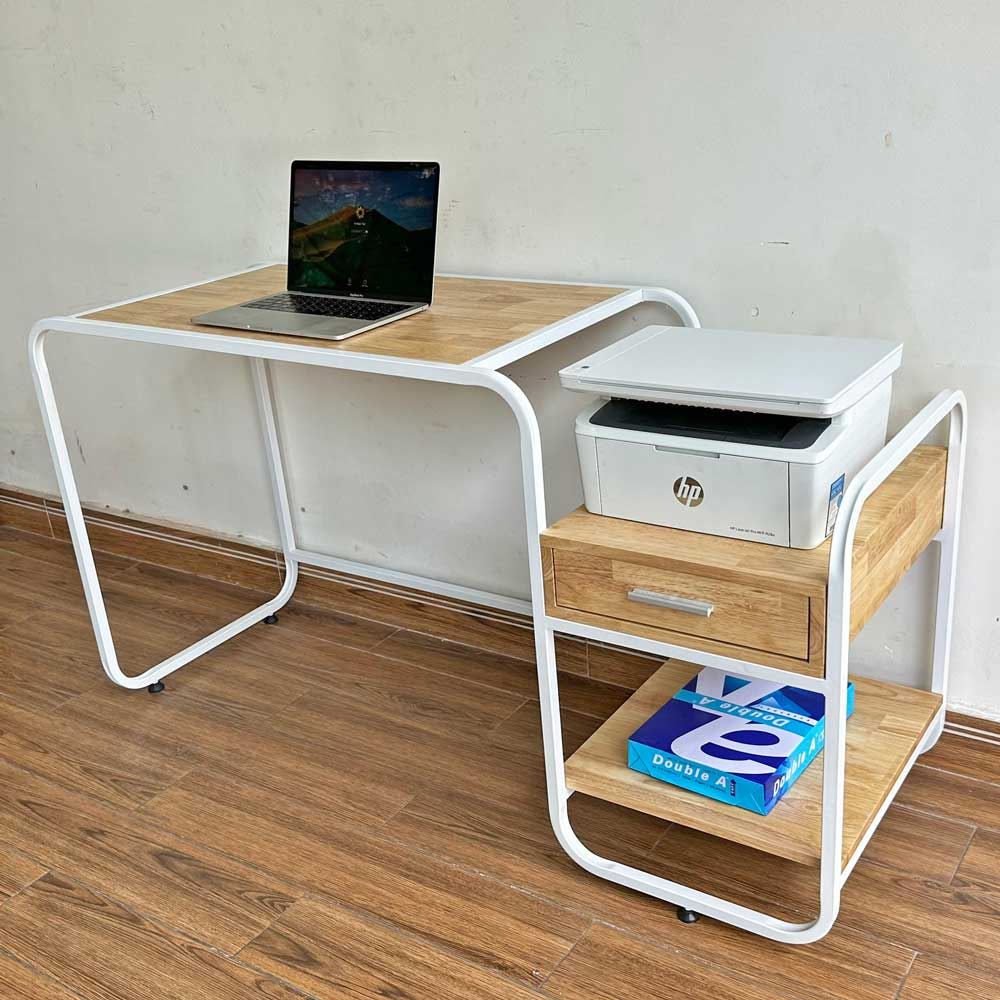 Tuy chỉ là một thiết bị nhỏ trong phòng làm việc nhưng máy in cũng "ngốn" không ít diện tích trong phòng. Nếu để máy in lên mặt bàn làm việc thì diện tích sử dụng sẽ chẳng còn lại bao nhiêu. Hơn nữa, việc để máy in lên bàn làm việc cũng gây ra nhiều trở ngại và bất tiện mỗi khi sử dụng. Do đó, mẫu bàn làm việc kết hợp kệ để máy in sẽ là sự lựa chọn đáng đế bạn cân nhắc. Không chỉ giúp bạn sắp xếp lại góc làm việc thêm gọn gàng, kiểu dáng kết hợp sẽ tạo nên sự liền mạch trong thiết kế, đảm bảo tính thấm mỹ và hữu ích rất nhiều trong quá trình sử dụng.