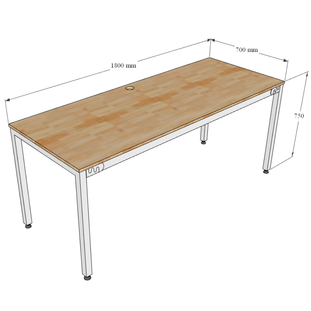 - Chất liệu: Gỗ cao su dày 17mm, khung chân sắt 40x40mm và giăng bàn sắt 25x50mm dày 1.2mm cơ cấu lắp ráp
