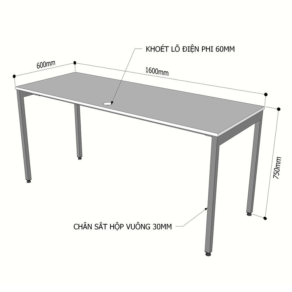 Bàn làm việc 160x60cm gỗ Plywood phủ melamin vân sồi chân hệ Slean có quỳ