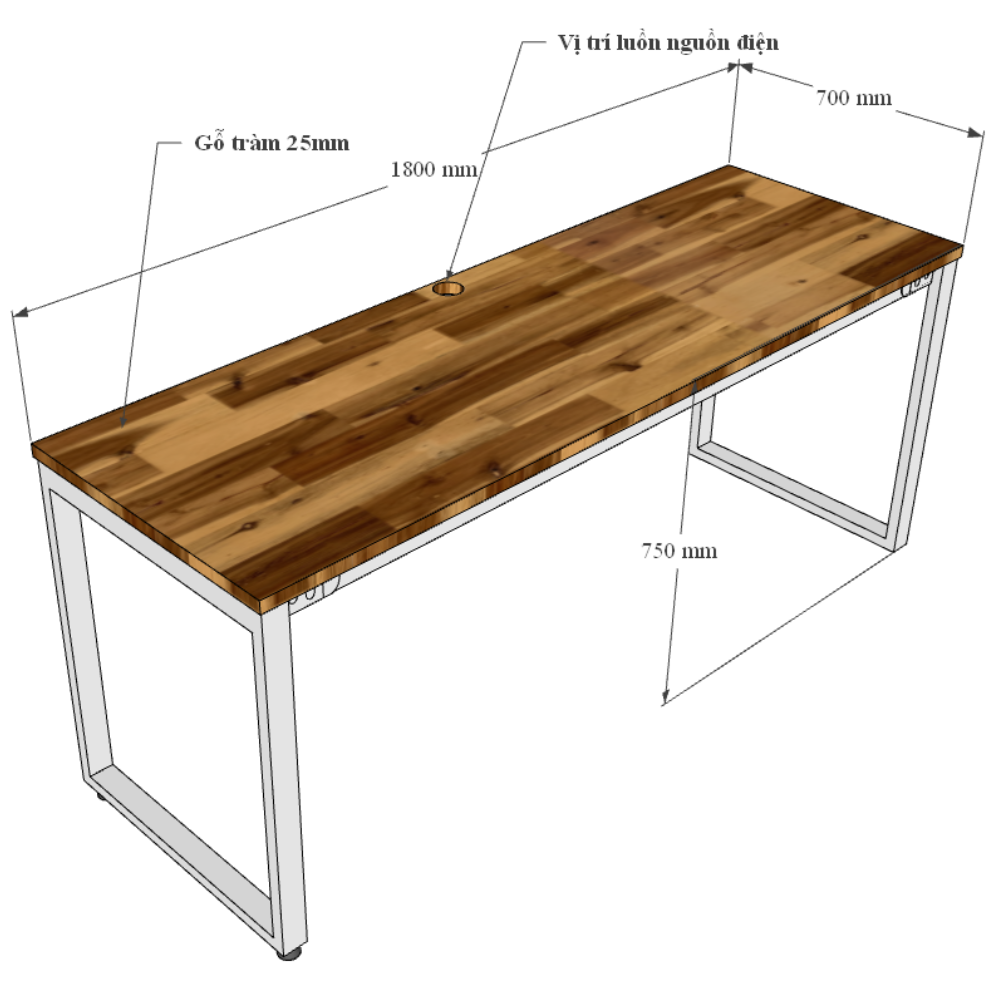 - Màu sắc: Màu gỗ tự nhiên, khung chân sắt sơn tĩnh điện trắng hoặc đen