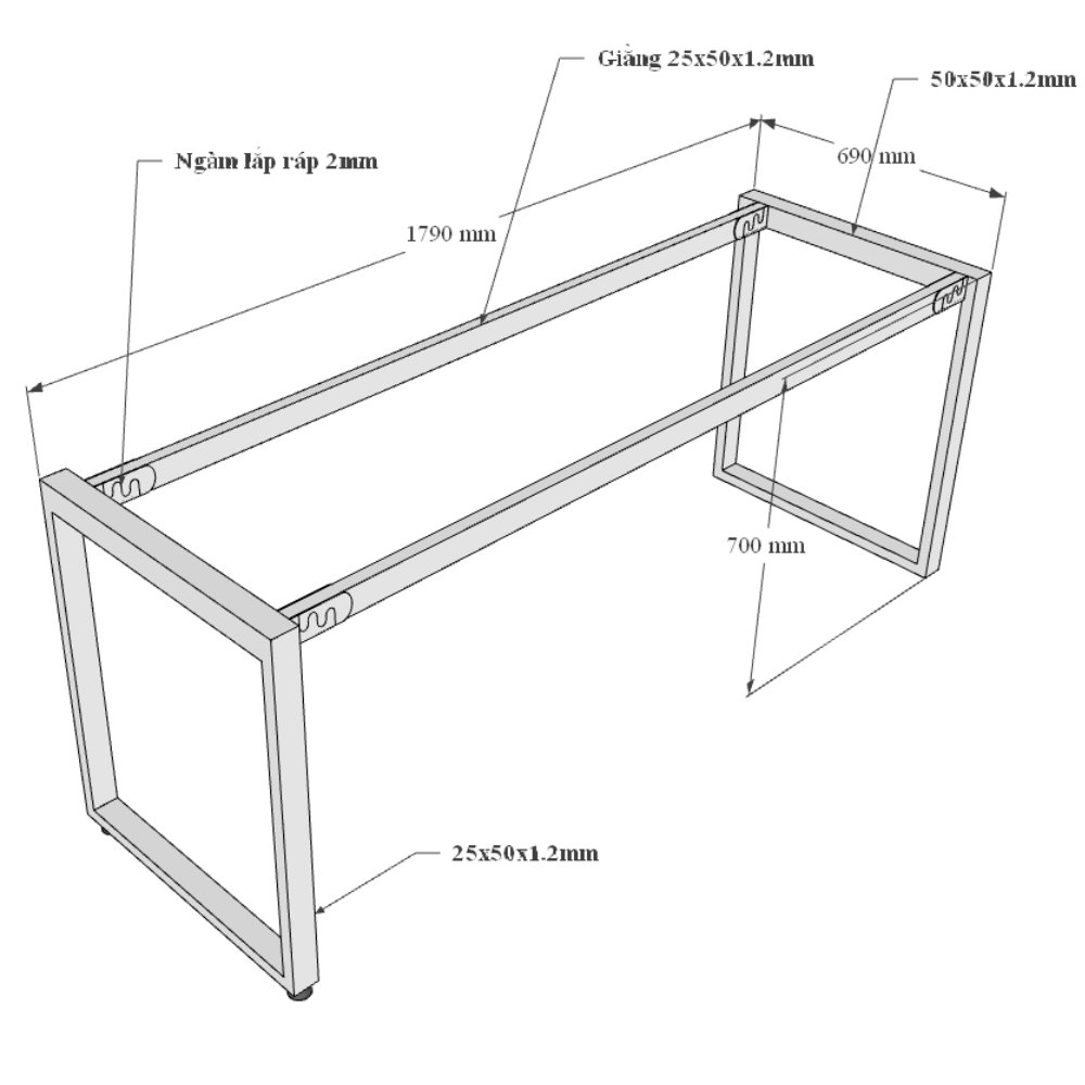 Chân bàn sắt cơ cấu lắp ráp rất tiện lợi khi tháo lắp và di dời