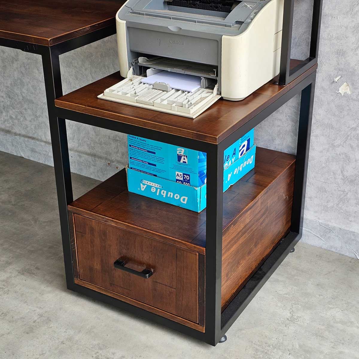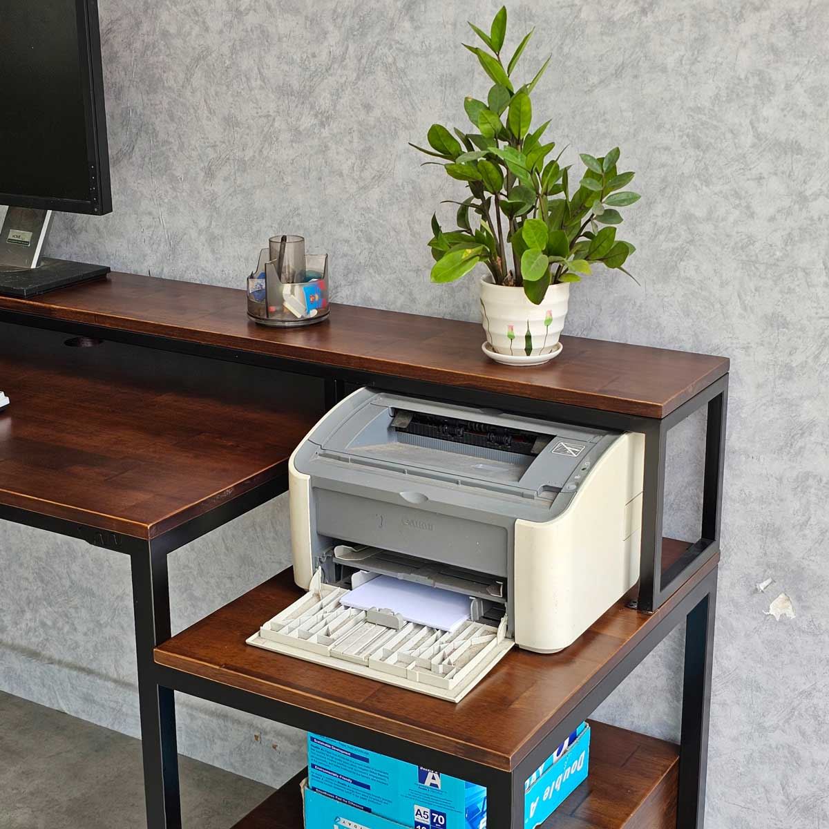 Kệ máy in bên hông bàn giúp bạn tiết kiệm diện tích và sắp xếp gọn gàng khu vực làm việc