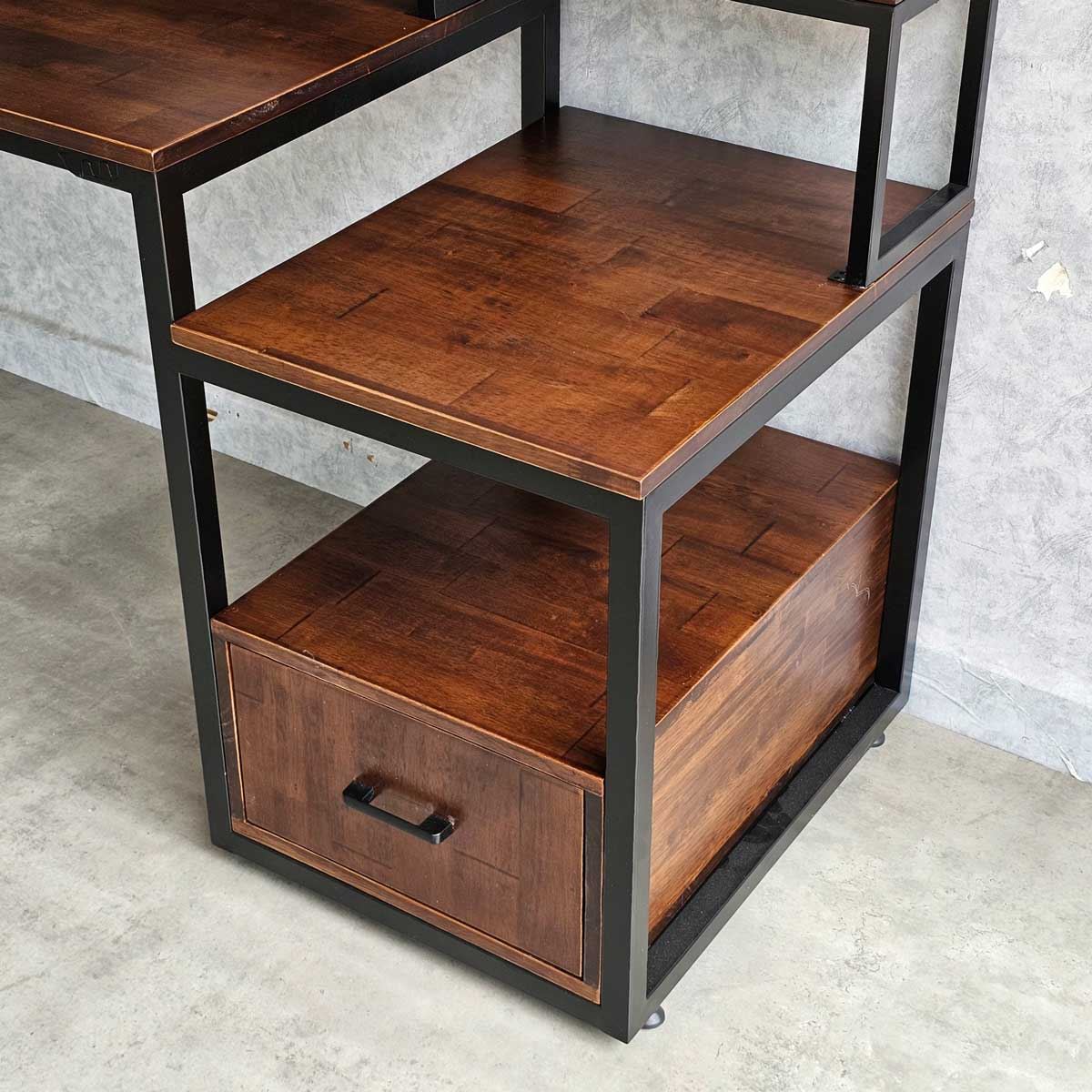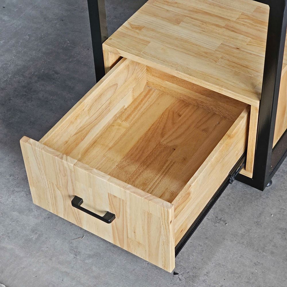 Với chất liệu được làm băng gỗ cao su AA, tiêu chuẩn xuất khẩu, được xử lý chàm nhám kỹ lưỡng, bề mặt xử lý chống thấm nước, giúp tăng độ bền và đảm bảo tính thẩm mỹ cao. Vân gỗ cao su AA không chỉ mang đến vẻ đẹp sang trọng, ấm áp mà còn đảm bảo độ bền chắc theo thời gian. Khung sắt của bàn làm việc được làm từ chất liệu sắt dày dặn, sơn tĩnh điện chống gỉ sét và trầy xước. Nhờ đó, bàn có khả năng chịu lực tốt, đảm bảo an toàn cho người sử dụng.
