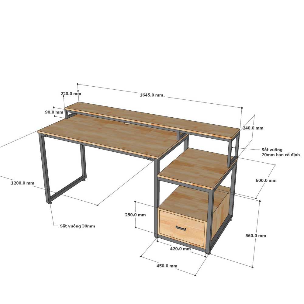 Bản vẽ chi tiết kích thước bàn máy tính liền kệ máy in