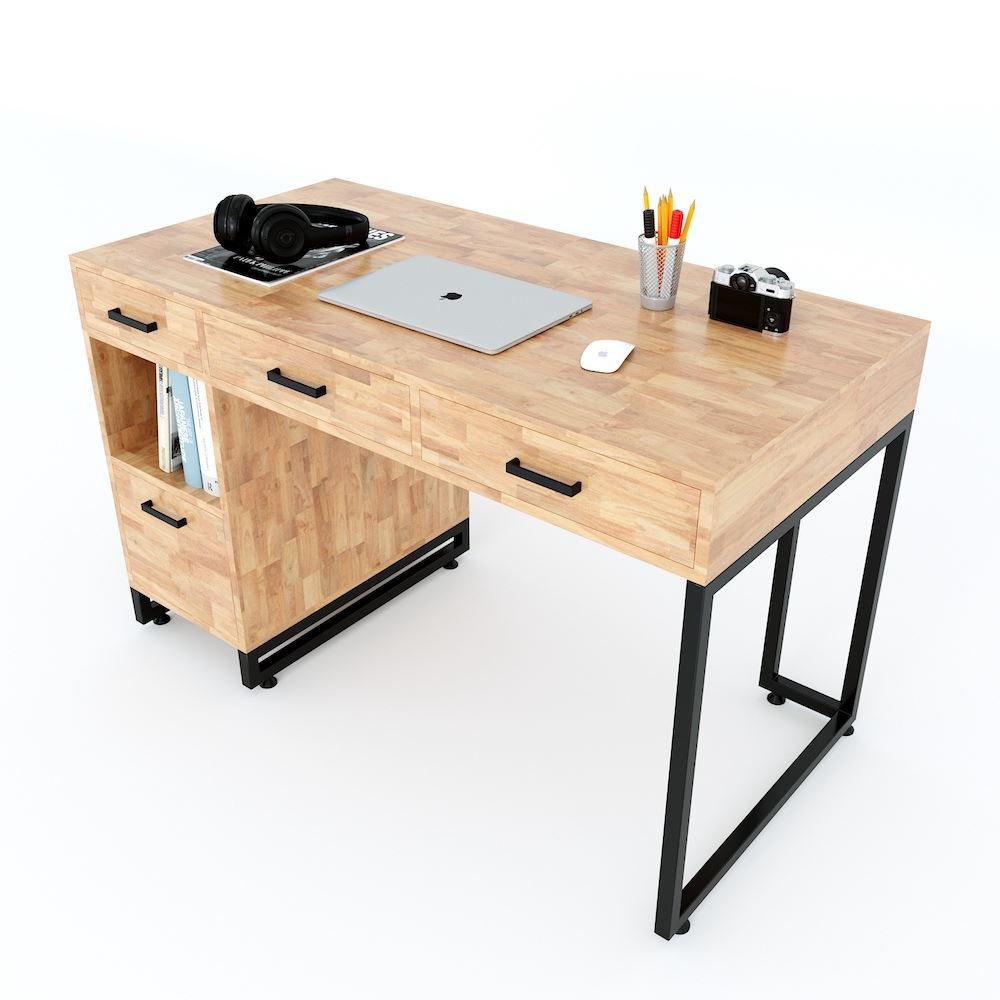 Bàn làm việc 3 ngăn kéo chân kết hợp tủ