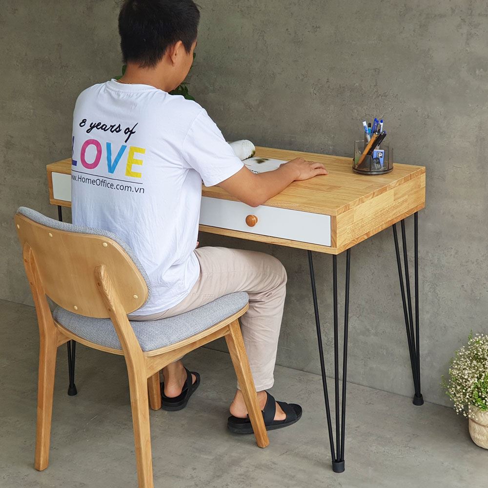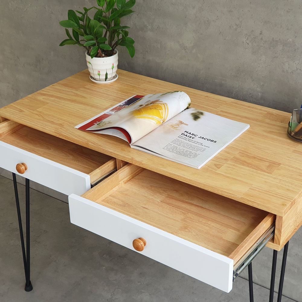 Bàn làm việc có hộc BD68106 sử dụng gỗ cao su ghép tiêu chuẩn AA dày 17mm của HomeOffice đã được khẳng định qua nhiều năm, màu sắc tự nhiên đẹp mắt, khung chân sắt sơn tĩnh điện rất chắc chắn, mẫu bàn BD68106 không chỉ dùng làm bàn học mà còn có thể dùng làm làm việc đều được. Mặt bàn kích thước 140x60cm rộng rãi thoải mái bài trí vật dụng làm việc.