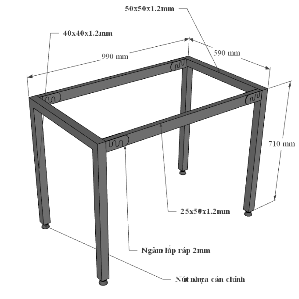 Chân bàn sắt cơ cấu lắp ráp ngàm tiện lợi nhưng vẫn đảm bảo độ chắn chắn