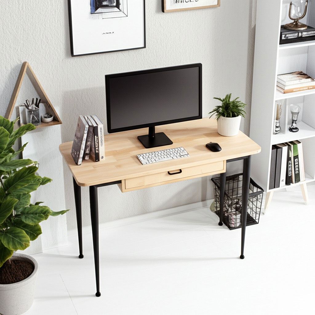 Bàn làm việc RONA 120x60cm gỗ cao su chân sắt CONE II BD68151
