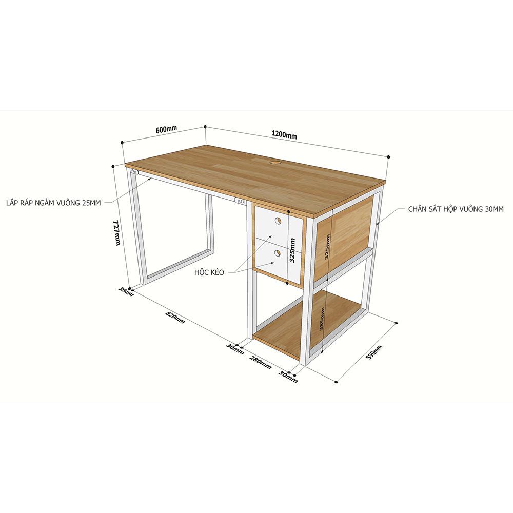 Kích thước chi tiết bàn làm việc SIBA kết hợp hộc kéo