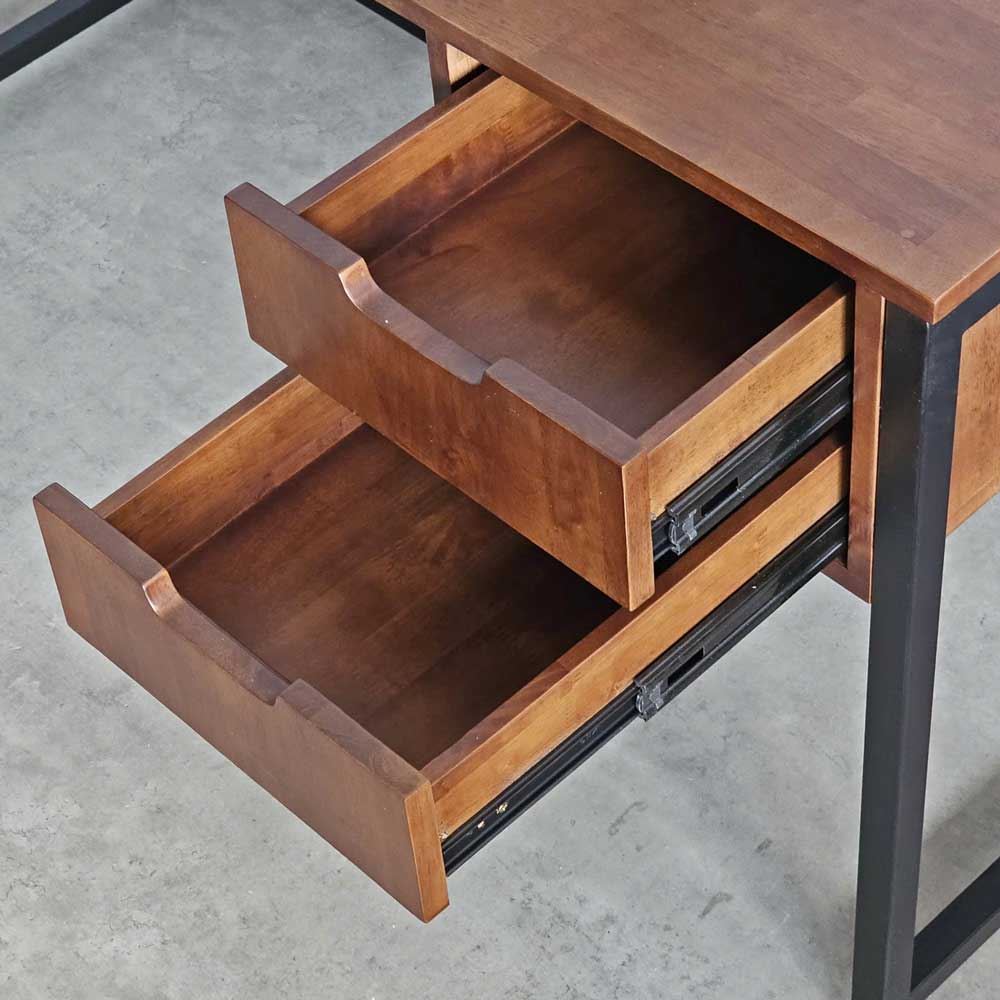 Bàn làm việc Zenis BD68133 có hệ khung chân bàn chữ U sáng tạo, kết hợp với các thanh sắt chống song song, tạo nên một tổng thể hài hòa, vừa vững chãi lại vừa mềm mại, mang đến cảm giác như chiếc bàn đang "lơ lửng" trong không gian, tạo điểm nhấn thú vị. Mặt bàn bằng gỗ cao su AA được xử lý chà nhám và phủ chống thấm, không chỉ mang đến cảm giác gần gũi mà còn đảm bảo độ bền cao, chống chịu được sự khắc nghiệt của thời gian.