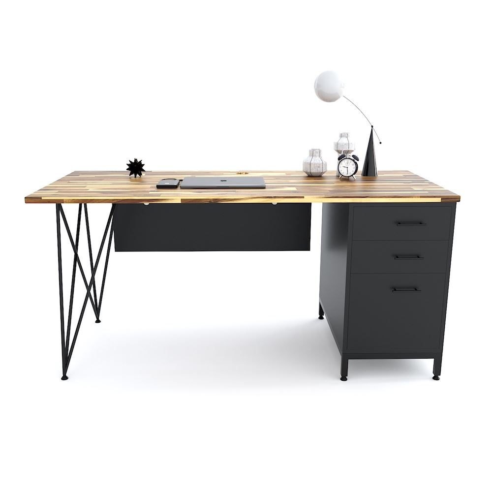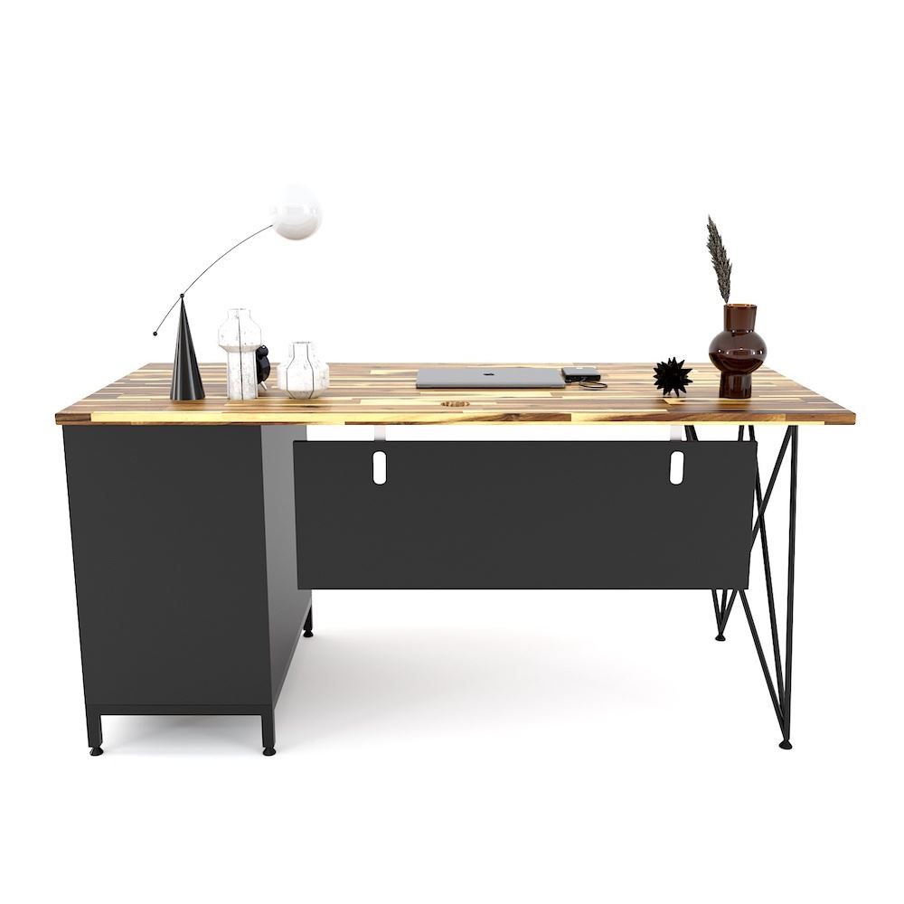 Bàn lãnh đạo 160x70cmchân kết hợp tủ BGD68056 với mặt bàn GỖ TRÀM dày 25mm tiêu chuẩn AA được xử lý PU hoàn thiện cho bề mặt sản phẩm rất đẹp mắt kết hợp với khung chân sắt phi có kiểu dáng độc đáo được gia cầu kỳ và tỉ mỉ đảm bảo sự chắc chắn cũng như tính thẩm mỹ cho sản phẩm. Chân bàn bên phải kết hợp tủ 3 ngăn kéo tăng không gian lưu trữ mà không tốn nhiều diện tích nên những mẫu bàn làm việc kết hợp chân tủ được nhiều khách hàng yêu thích và lựa chọn sử dụng cho không gian làm việc của mình.