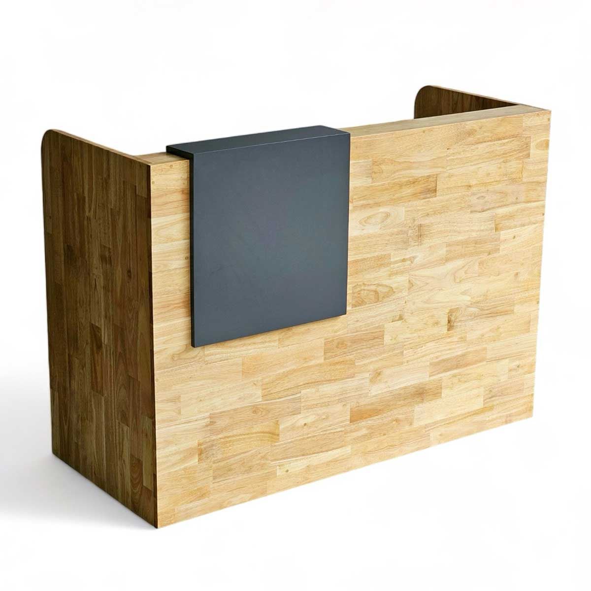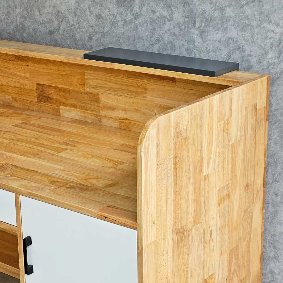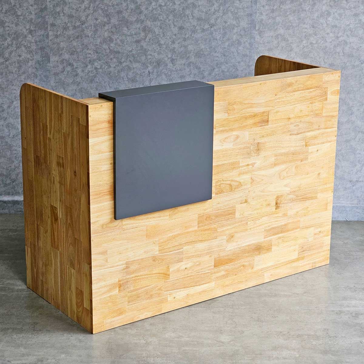 Bàn lễ tân 1m4 có hộc kéo gỗ cao su tự nhiên BLT68016 được làm hoàn toàn từ gỗ cao su AA tiêu chuẩn xuất khẩu đã qua xử lý chống cong vênh, đảm bảo độ bền cao. Mặt gỗ có phủ 2 lớp PU chống ẩm chống thấm nước giúp tăng độ bền của sản phẩm và giúp dễ dàng lau chùi. Đằng sau mặt với thiết kế 2 ngăn kéo và 1 hộc tủ giúp bảo quản đồ đạc an toàn hơn.