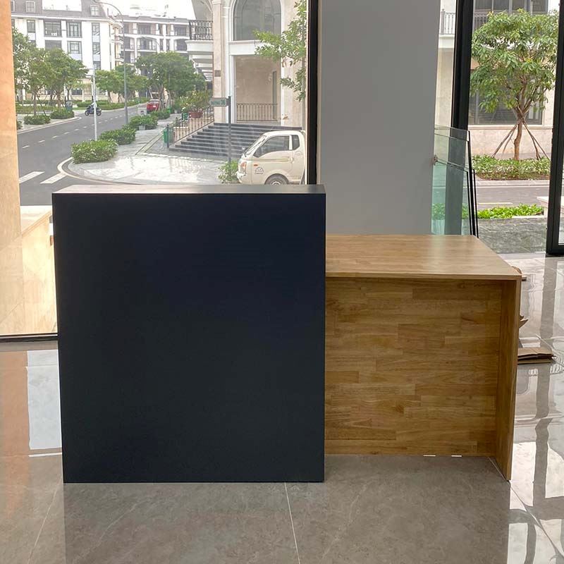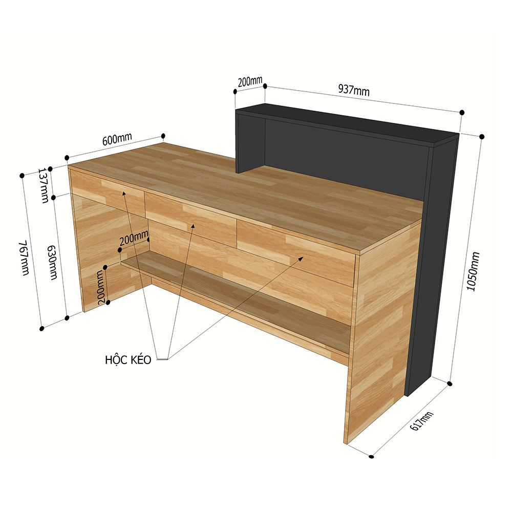 Bàn lễ tân 1m6 có hộc kéo gỗ cao su tự nhiên màu nâu lau độc đáo
