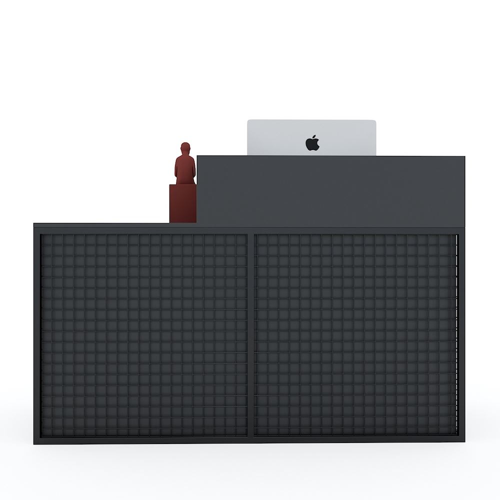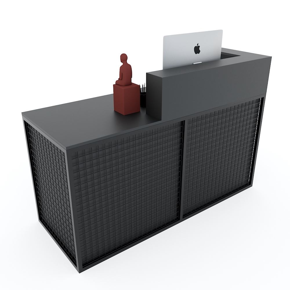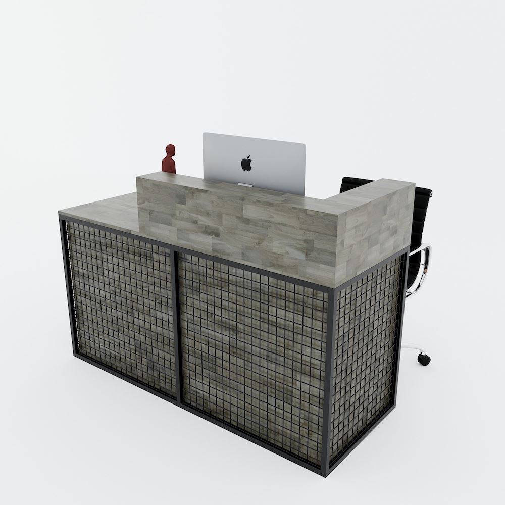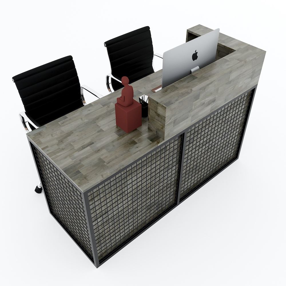 Bàn lễ tân có hộc kéo gỗ cao su kết hợp lưới sắt full đen