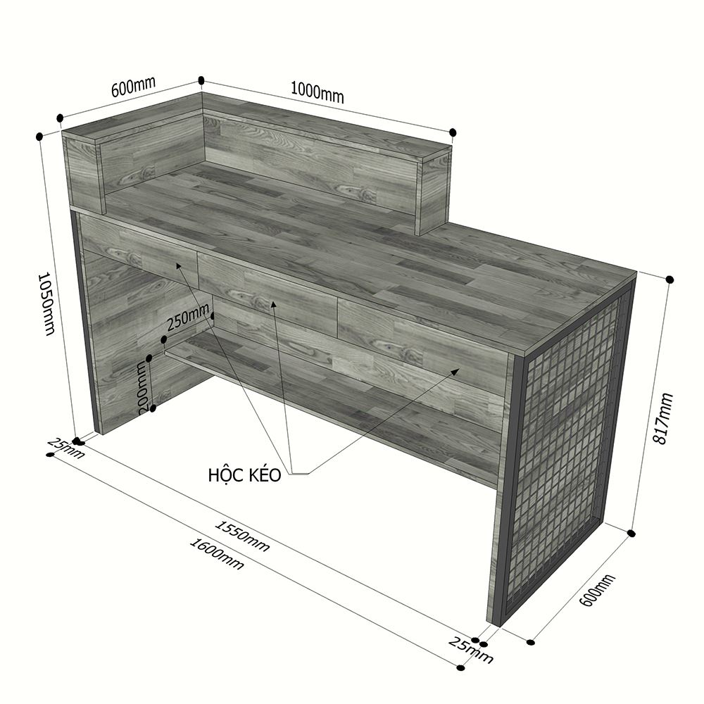 Kích thước quầy lễ tân, bàn tính tiền BLT68013