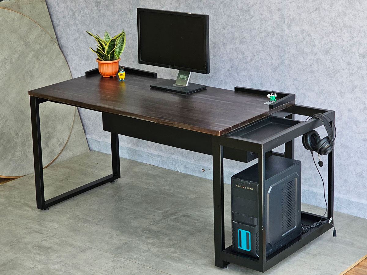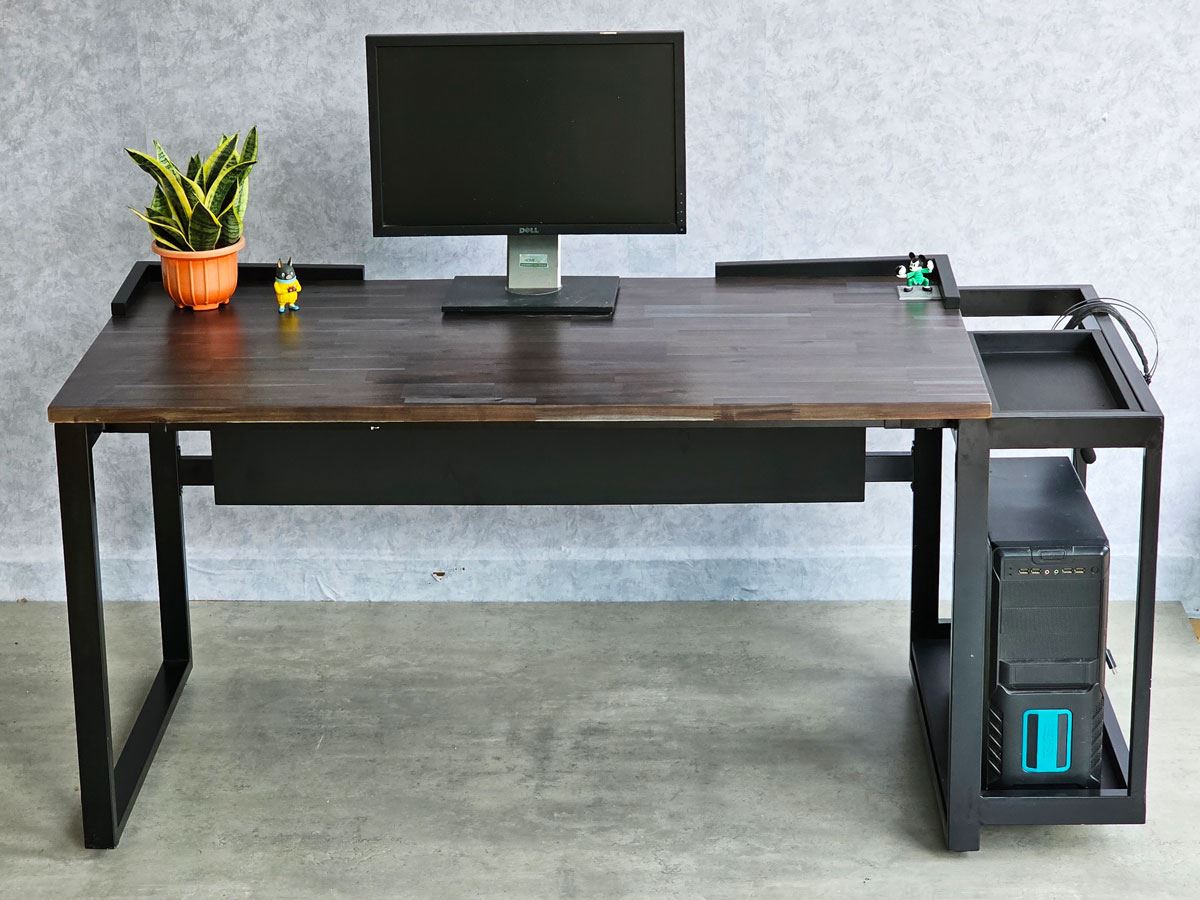 Chất liệu sử dụng cho bàn là gỗ tràm dày 25mm, với đường vân gỗ đẹp mắt, được xử lý và sơn PU hoàn thiện cho bề mặt sản phẩm rất đẹp mắt, chống nước tuyệt đối, mặt bàn sơn PU 6 màu sắc khác nhau giúp bạn có được sự lựa chọn theo sở thích của mình. Hệ khung sắt dày dặn được hàn chắc chắn, có tính ổn định cao, bề mặt phủ sơn tĩnh điện chống gỉ.