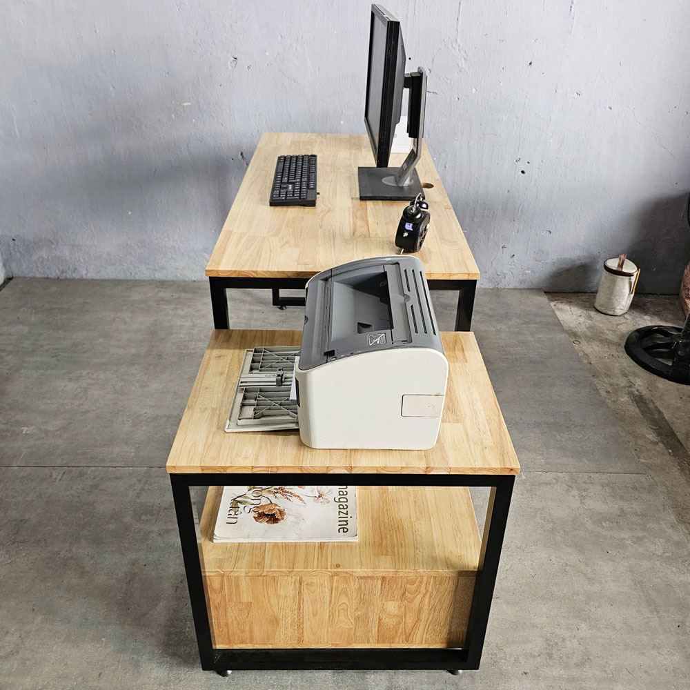 Với thiết kế tích hợp kệ máy in bên hông, bạn sẽ tiết kiệm được một khoảng không gian đáng kể so với việc sử dụng bàn và kệ riêng biệt. Bên dưới kệ máy in là một ngăn kéo tiện dụng, nơi bạn có thể cất giữ giấy in, mực in, văn phòng phẩm hoặc bất kỳ vật dụng cá nhân nào, giữ cho bàn làm việc luôn gọn gàng và ngăn nắp. Sự kết hợp thông minh này không chỉ tối ưu hóa không gian mà còn nâng cao hiệu suất làm việc, giúp bạn tiết kiệm thời gian và công sức khi cần in ấn hay tìm kiếm tài liệu.