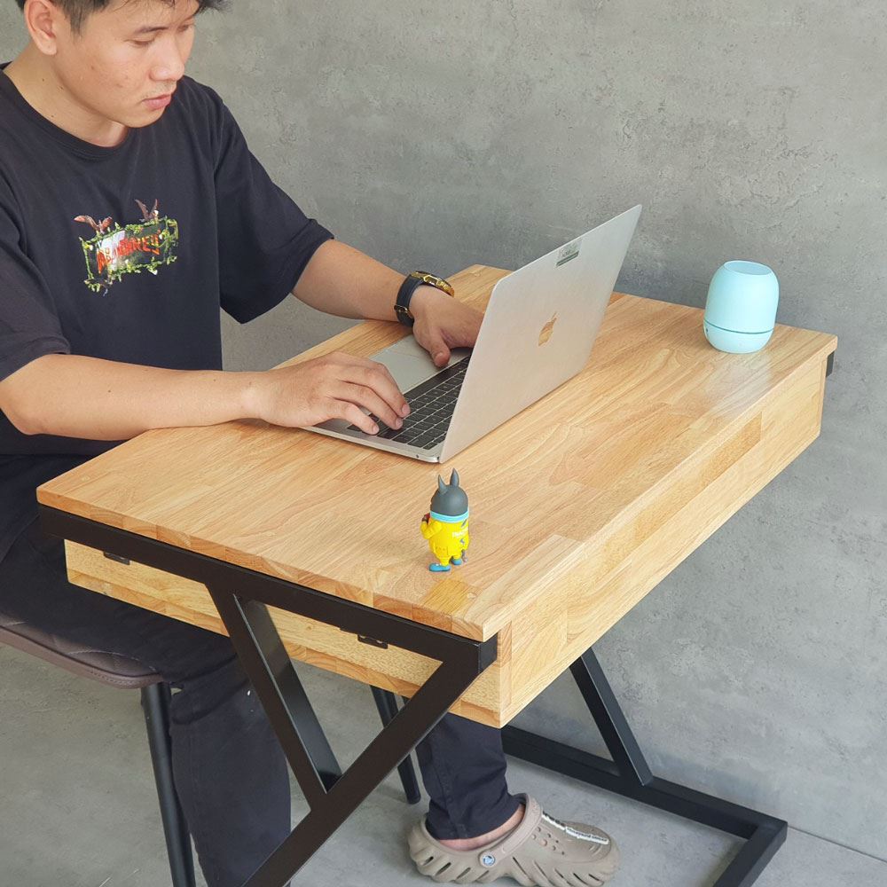 Bàn làm việc mini BD68112 dành cho không gian nhỏ để làm việc với Laptop và có hộc kéo để đồ là thiết kế được HomeOffice triển khai phiên bản 2 theo yêu cầu của chị My. Với kích thước nhỏ gọn phù hợp với mọi không gian, nhất là các không gian nhỏ lại càng phát huy hiệu quả. Chân sắt sơn tĩnh điện chắc chắn kết hợp với gỗ cao su màu tự nhiên siêu bền. Nếu các bạn thích thiết kế này hoặc thiết kế này phù hợp có thể đặt HomeOffice sản xuất nhé. Chúng tôi sẵn sàng Custom kích thước theo yuê cầu của quý khách.