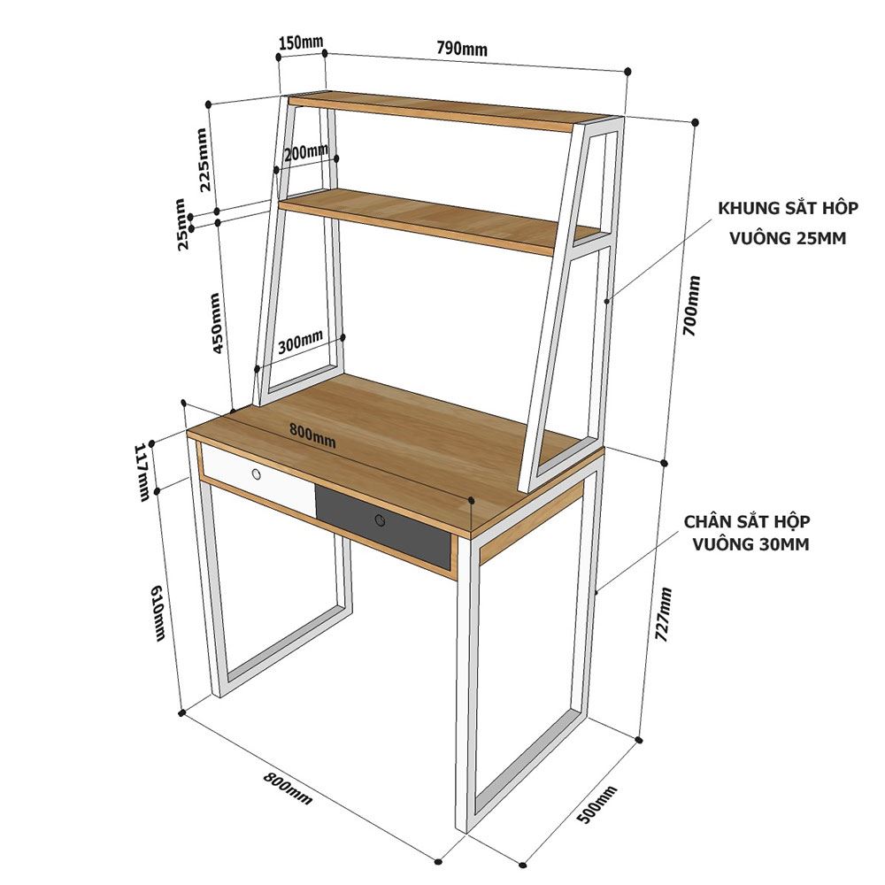 Kích thước chi tiết bàn kết hợp kệ FD68043