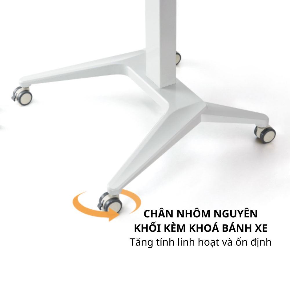 Bàn được trang bị hệ thống bánh xe cao cấp, giúp bạn dễ dàng di chuyển bàn đến mọi vị trí mong muốn mà không tốn nhiều sức lực