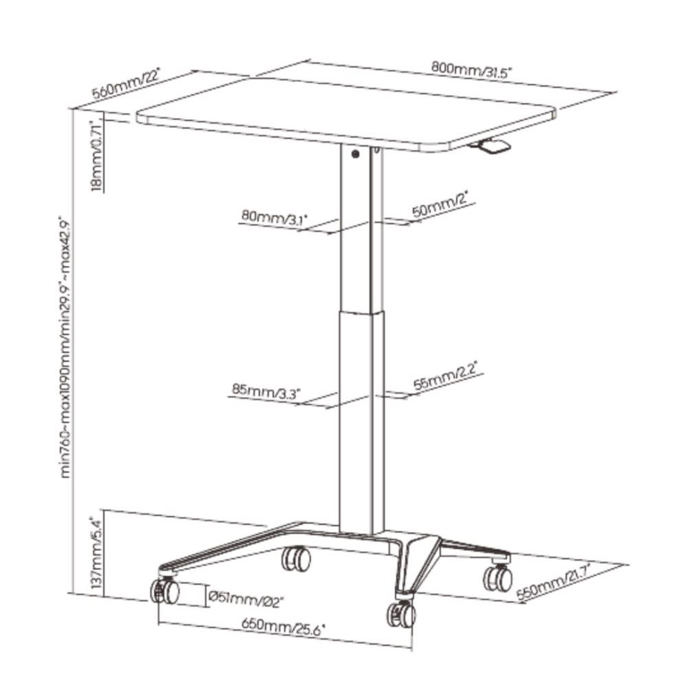 Kích thước mặt bàn 560x800mm, thoải mái cho việc sắp xếp laptop, tài liệu và các vật dụng cần thiết khi làm việc. Bàn nâng hạ được trang bị hệ khung chân chắc chắn, đảm bảo độ ổn định khi nâng hạ và khả năng chịu tải trọng lên đến 8kg. Khung bàn được làm từ thép cao cấp, sơn tĩnh điện chống gỉ, đảm bảo độ bền bỉ và an toàn cho người sử dụng. Mặt bàn được làm từ gỗ MFC phủ Melamine cao cấp, chống xước, chống thấm nước, dễ dàng vệ sinh.