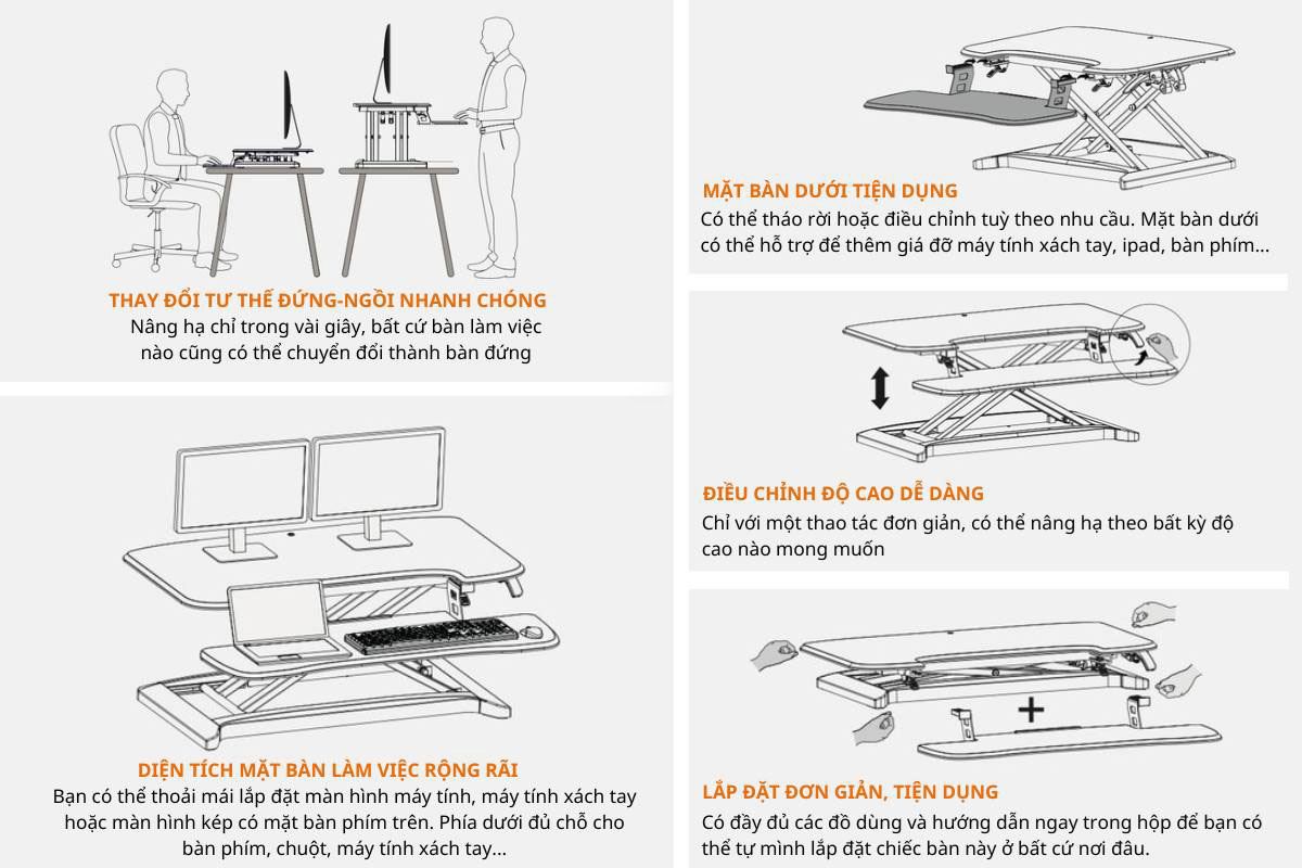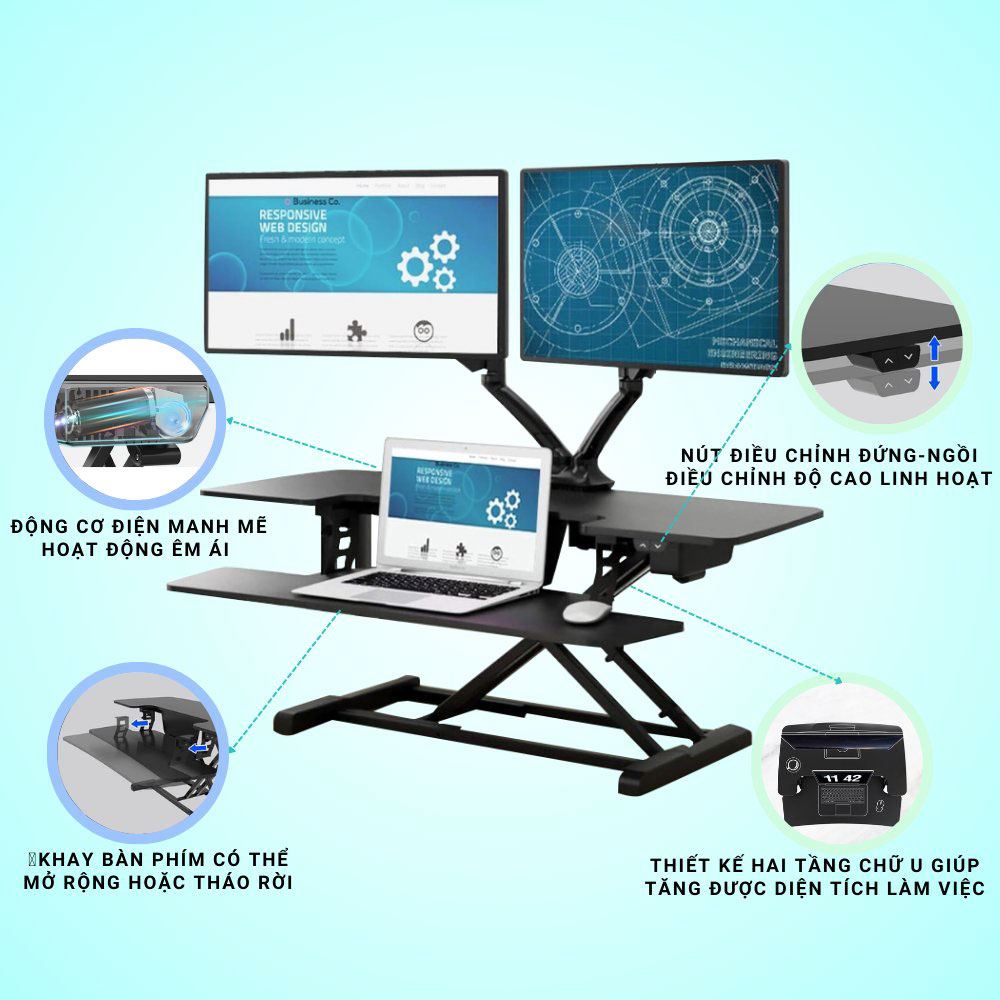 Bàn nâng hạ Flexdesk động cơ điện đổi trạng thái làm việc EM7L
