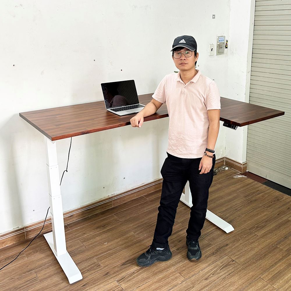 Bàn nâng hạ FlexiCorner gỗ Tràm chân điện 3 khớp