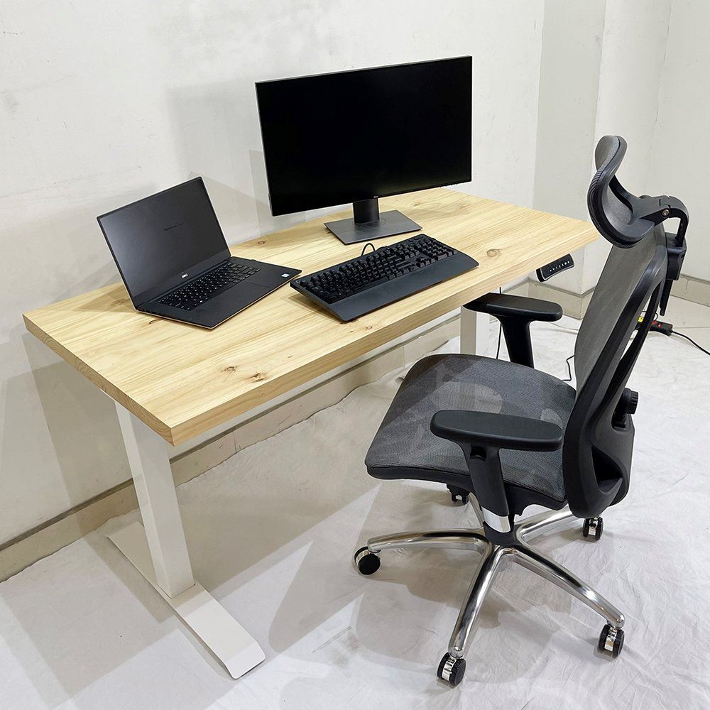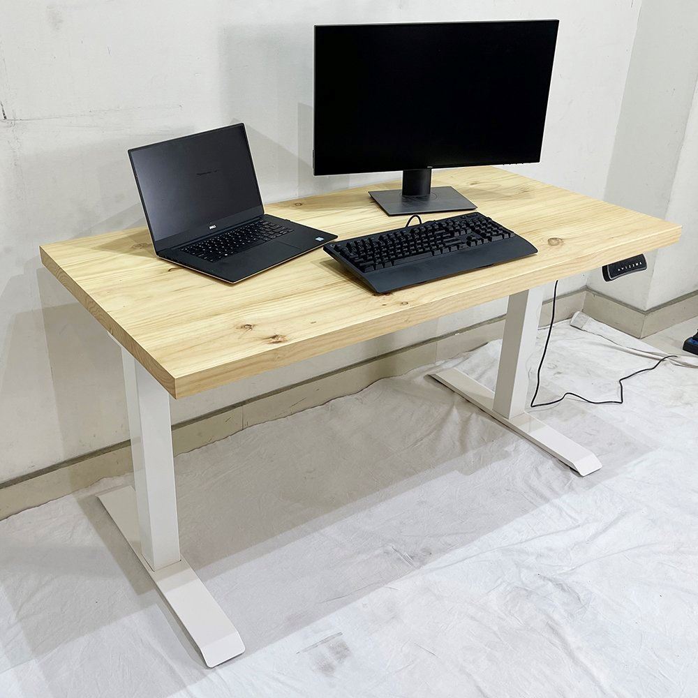 Bàn nâng hạ FlexiDesk Gỗ Thông dày 4cm 2 khớp chỉnh điện