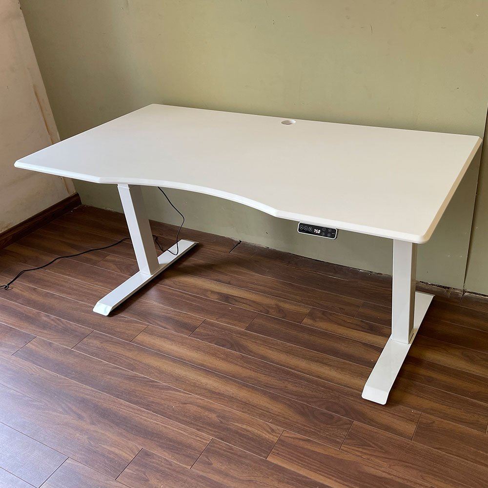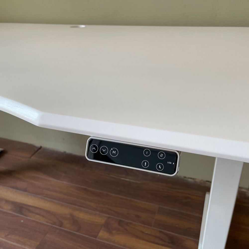 Bàn nâng hạ FlexiDesk mặt gỗ cao su màu trắng chân 3 khớp chỉnh điện