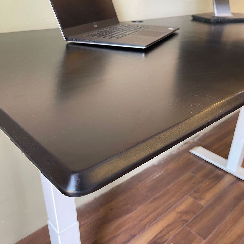 Mặt bàn tại HomeOffic với chất liệu đa dạng được lựa chọn cẩn thận, kỹ càng nhằm mang đến sản phẩm có chất lượng và tính thẩm mỹ cao. Bàn nâng hạ FlexiDesk FLD012 sử dụng mặt bàn gỗ cao su (thế mạnh của HomeOffice), gỗ loại AA dày 17mm tiêu chuẩn AA chuẩn xuất khẩu. Mặt bàn được xử lý và hoàn thiện chống thấm nước, chống cong vênh, bên ngoài được bảo vệ bởi một lớp PU chống thấm đảm bảo độ bền cho sản phẩm.