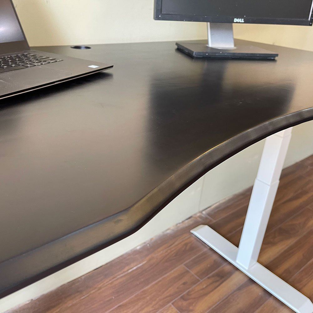 Bàn nâng hạ tăng mặt bàn khuyết gỗ cao su sơn PU màu đen cá tính